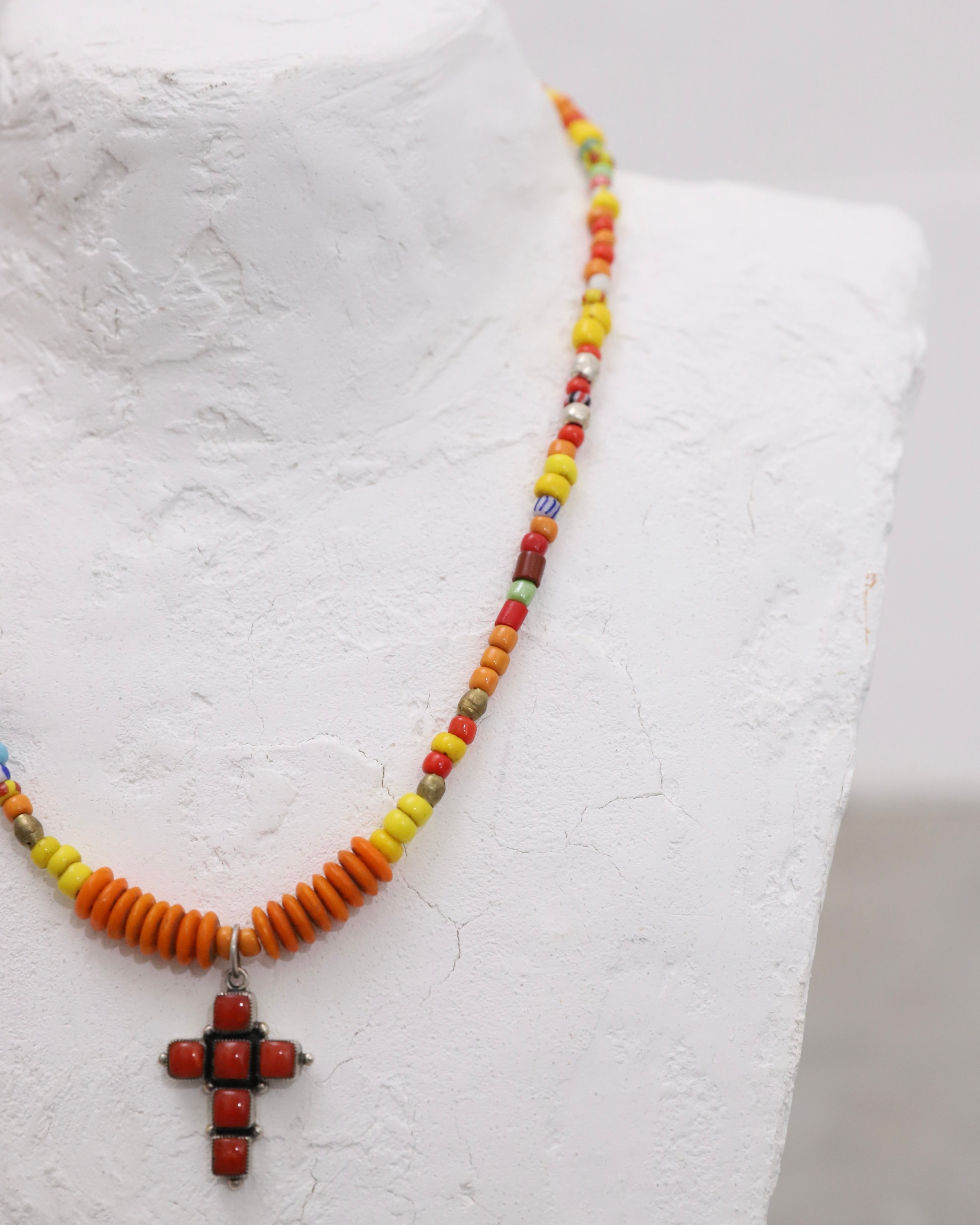 トップに配したクロスは、アメリカ・ニューメキシコの著名なインディアンジュエリーアーティスト