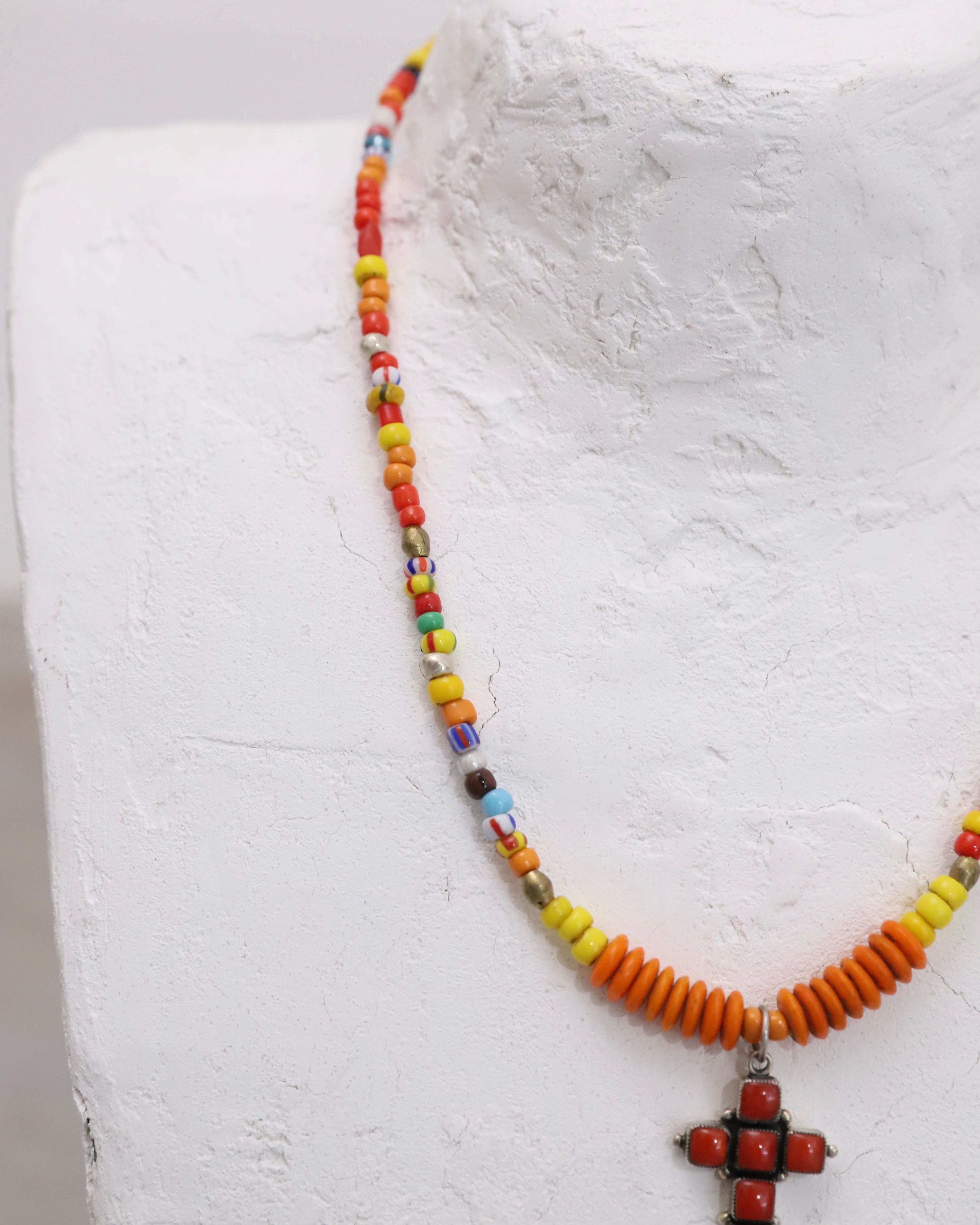 ネック部分には数十年〜百年近い歴史を持つアンティークビーズを使用。