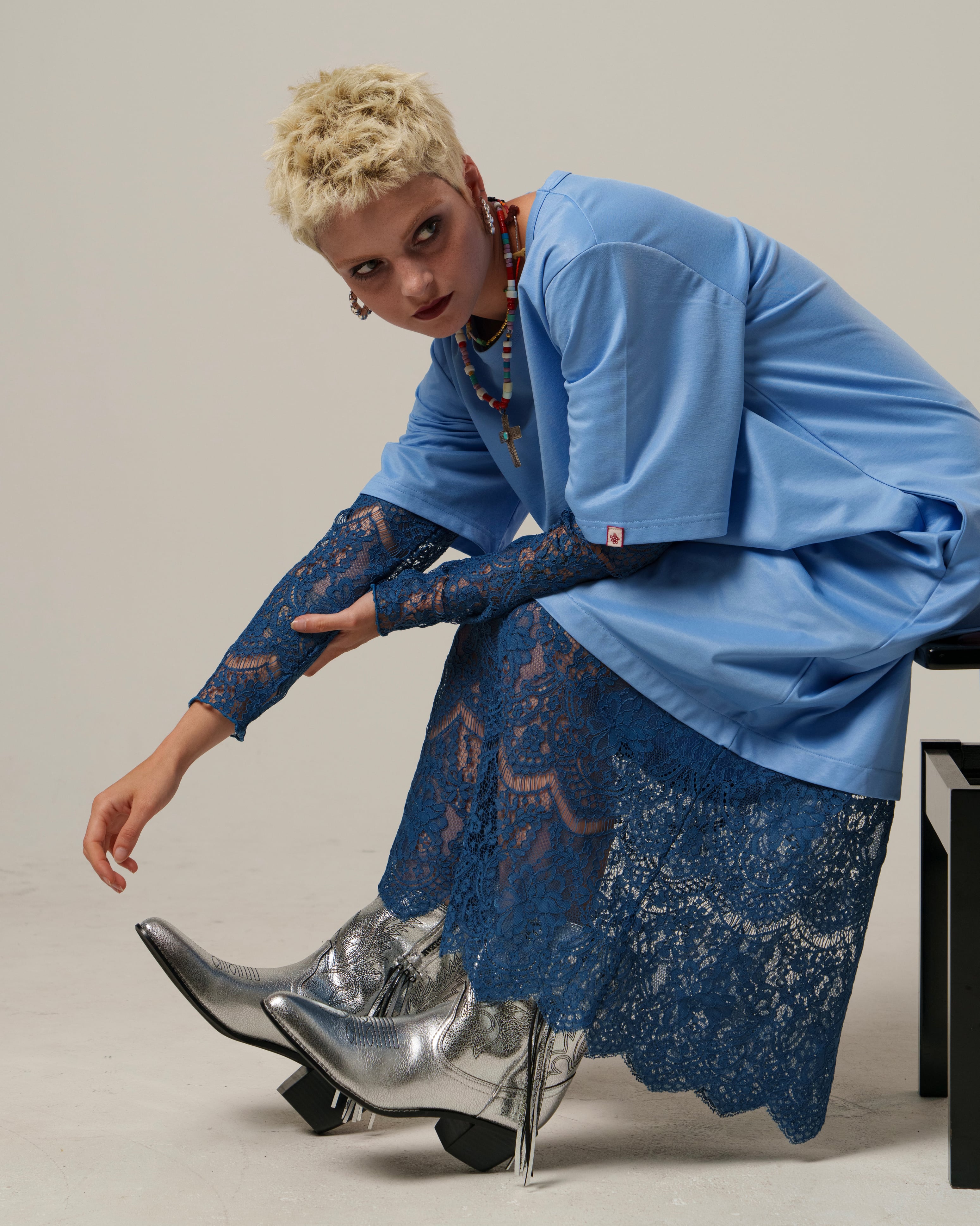 -Tシャツワンピースに、レースワンピースをレイヤードしたデザイン
