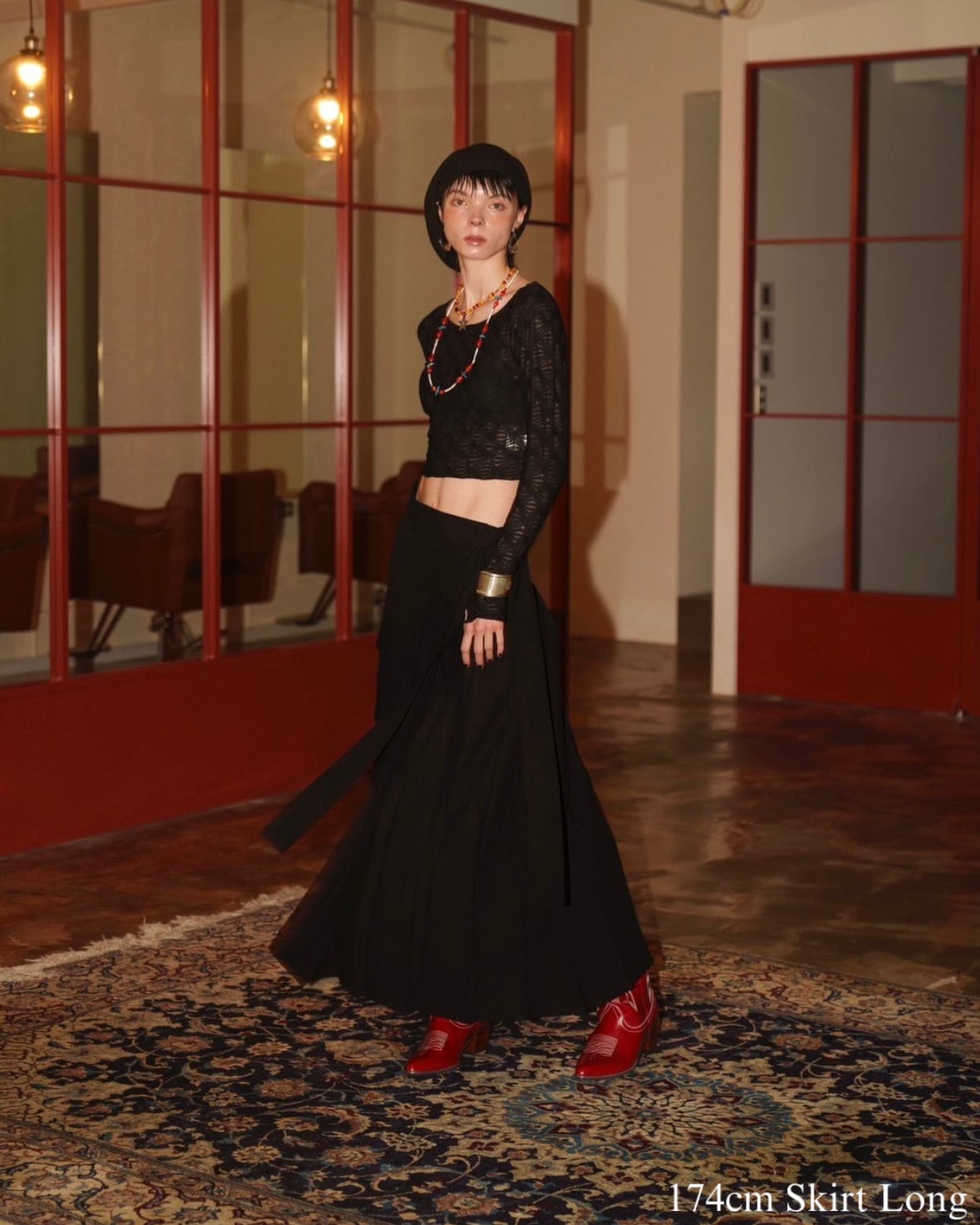 ⭐︎【展示会サンプル】Pleats Wrap Skirt / ブラックチェック / LONG