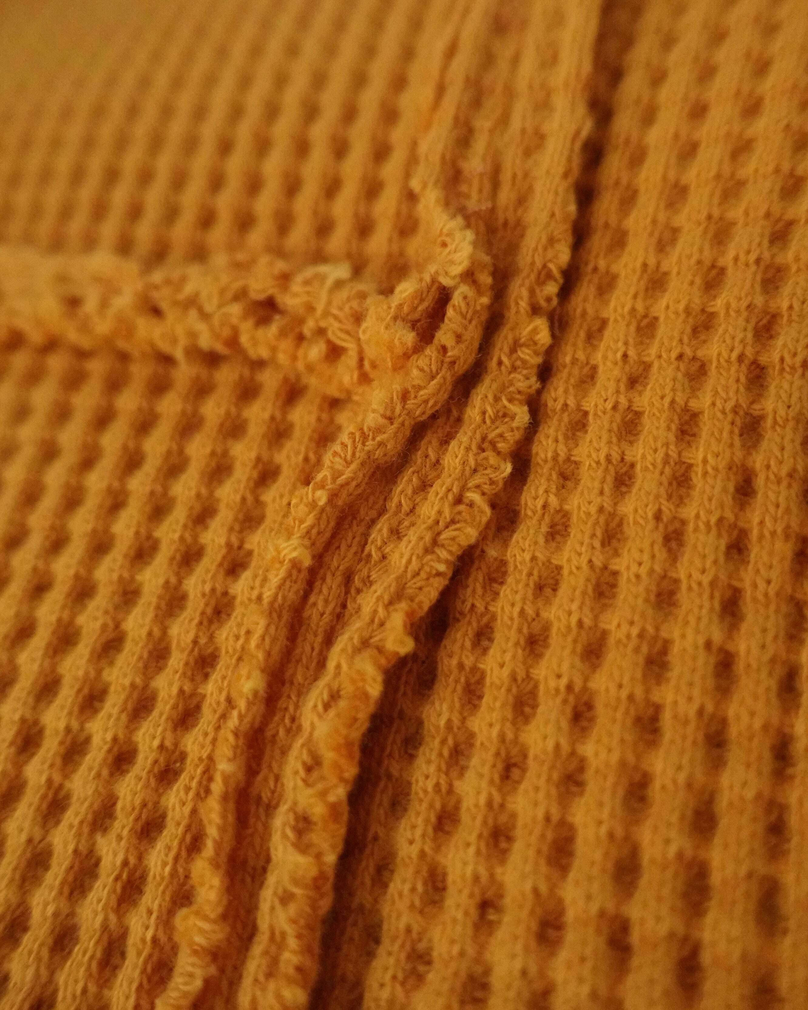 ・コットン100%のサーマル地を使用し、ふっくらとした厚みでスウェットライクな着心地