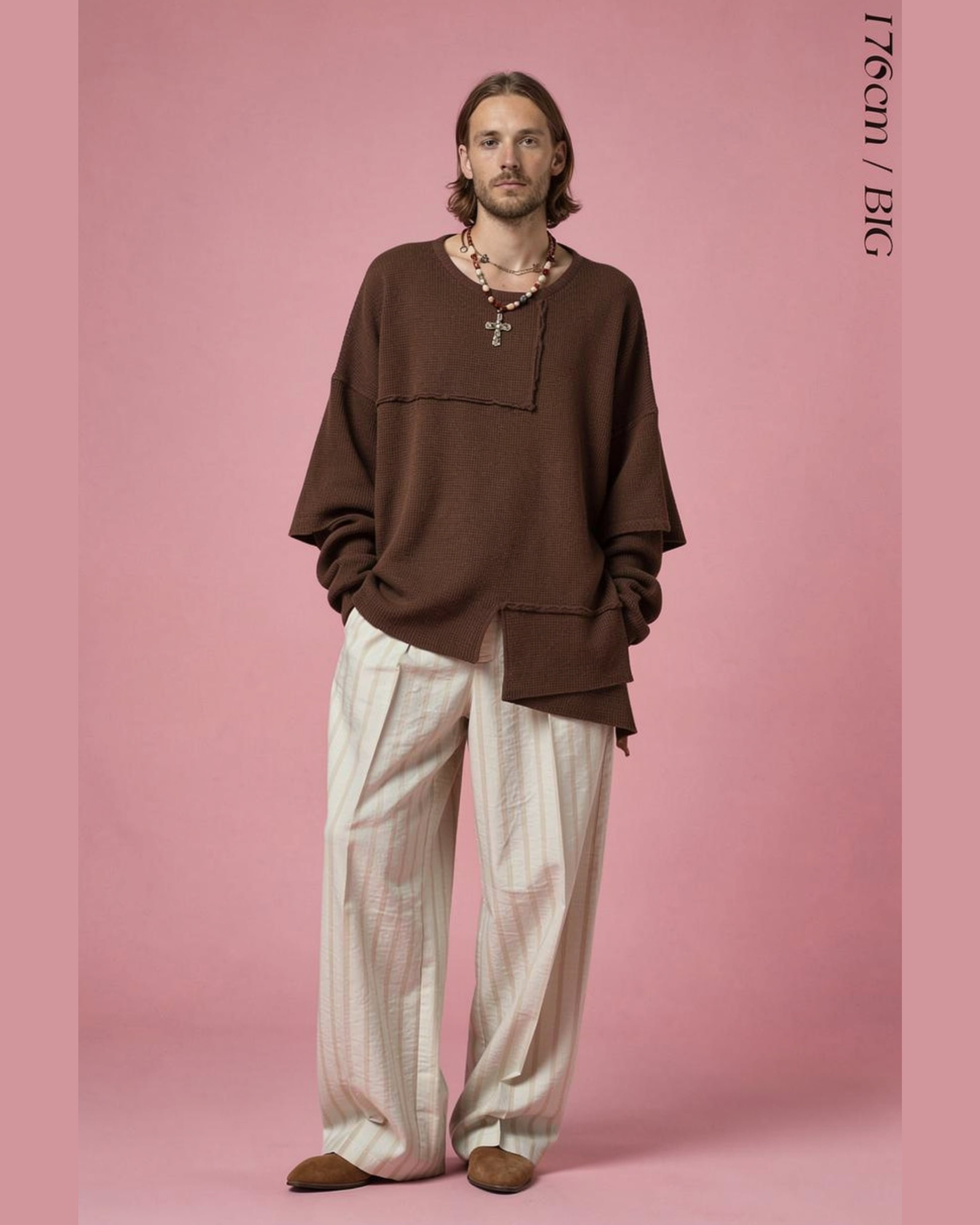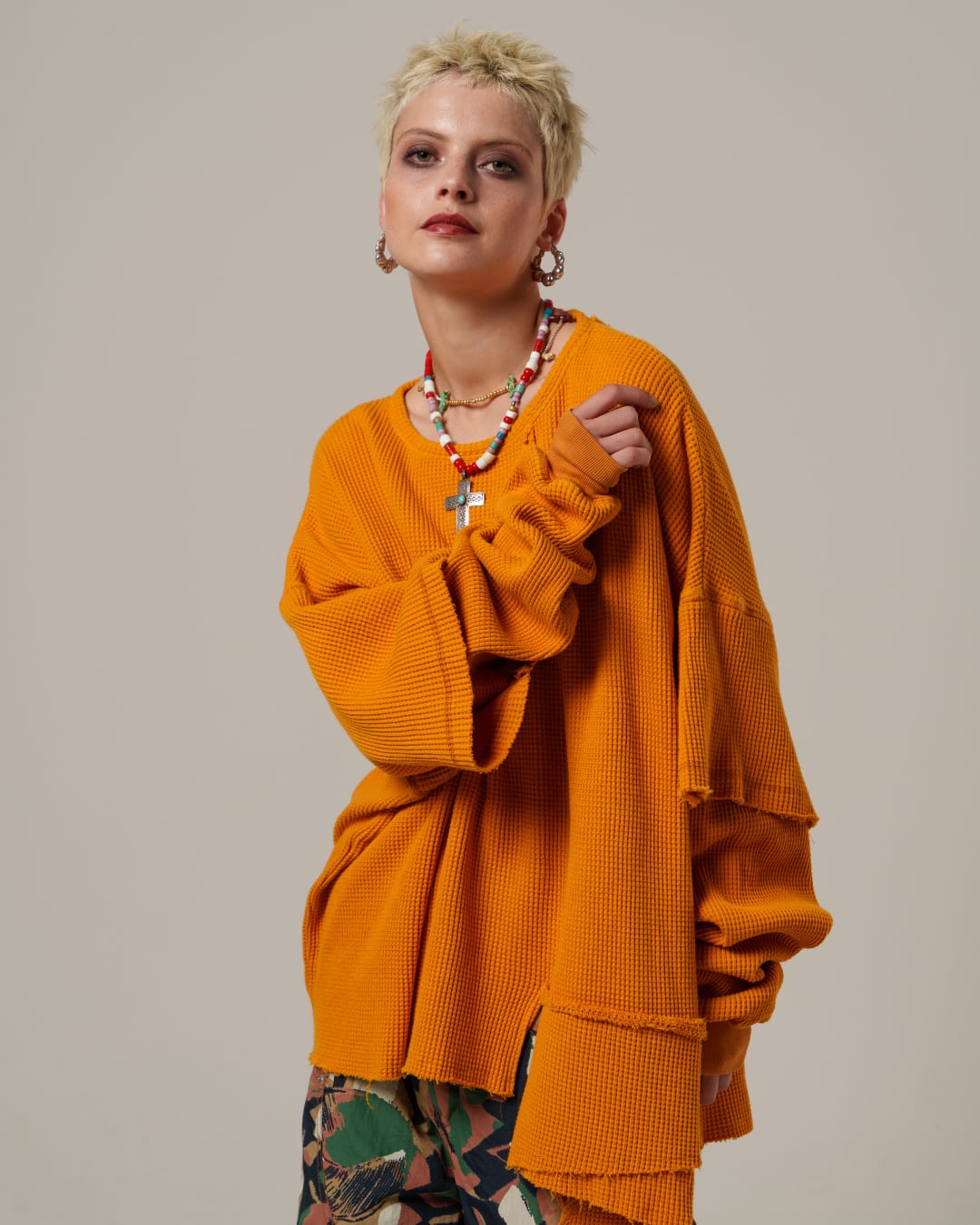 サーマル素材のカジュアルさに厚みとクラフト感を加え、グランジへと昇華させました。
