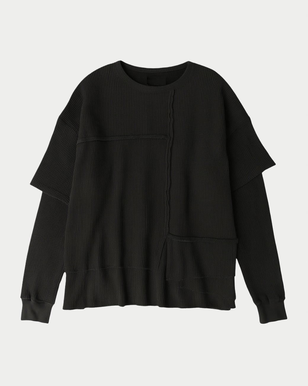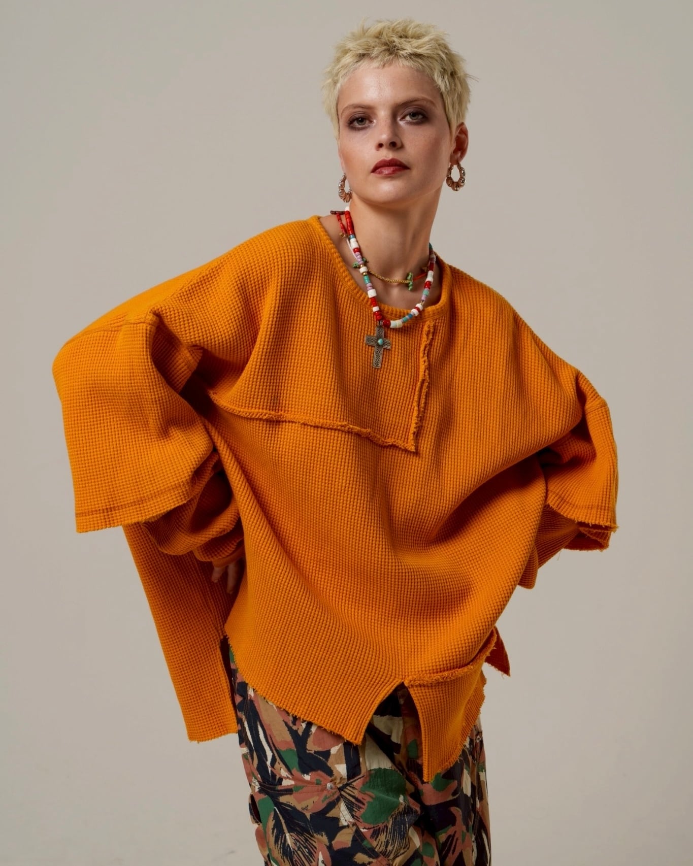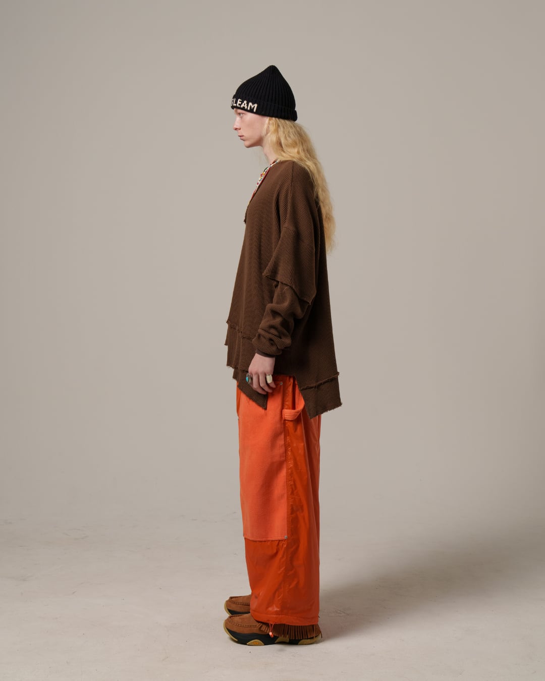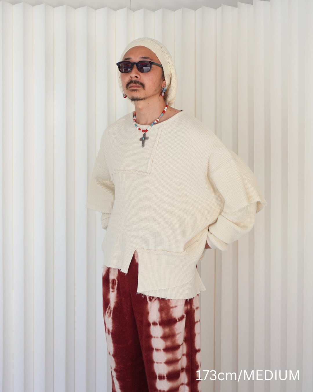 サーマル素材のカジュアルさに厚みとクラフト感を加え、グランジへと昇華させました。