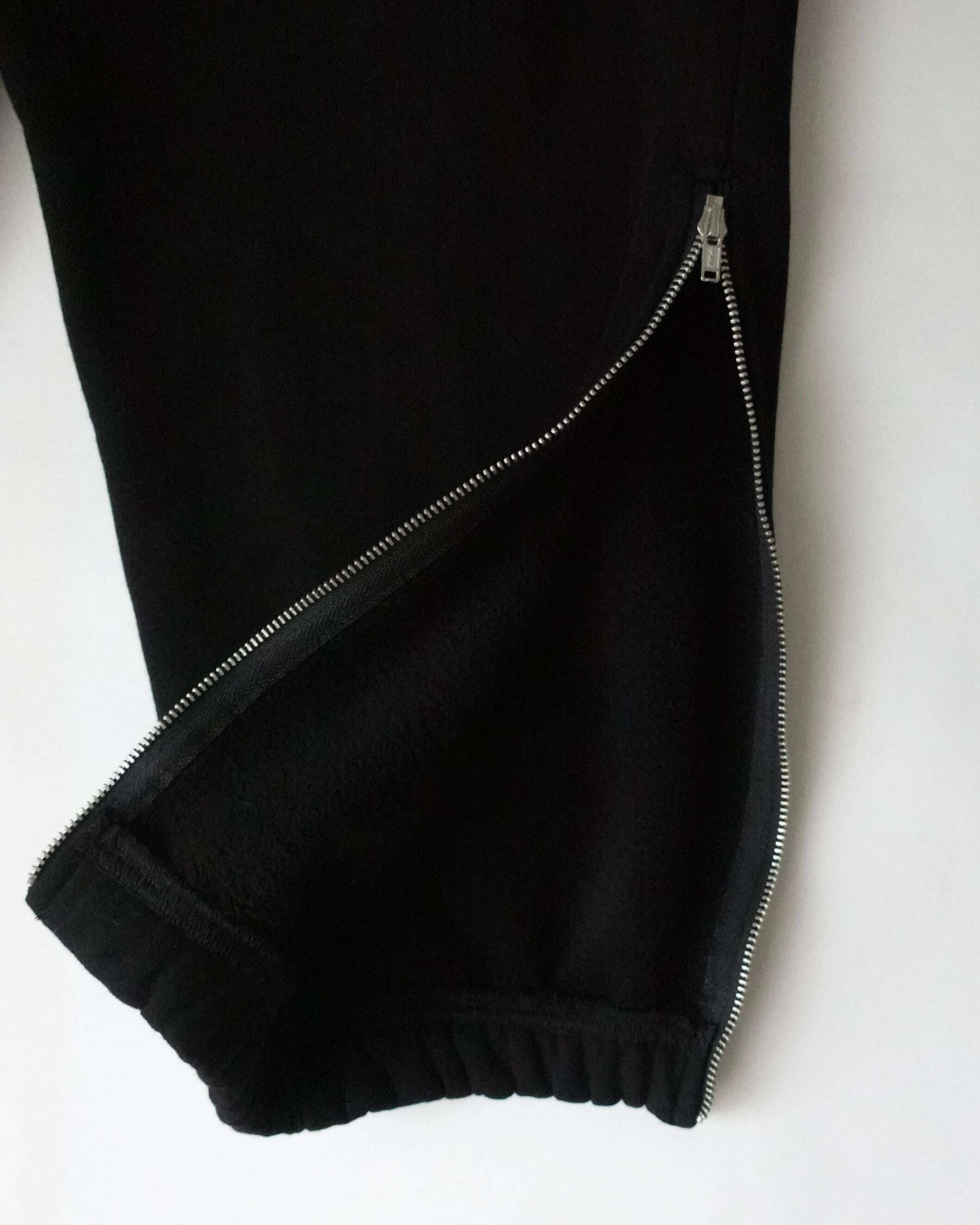 裾のジップを開閉することで、テーパードにもストレートにもシルエットを変化できる2WAY仕様。