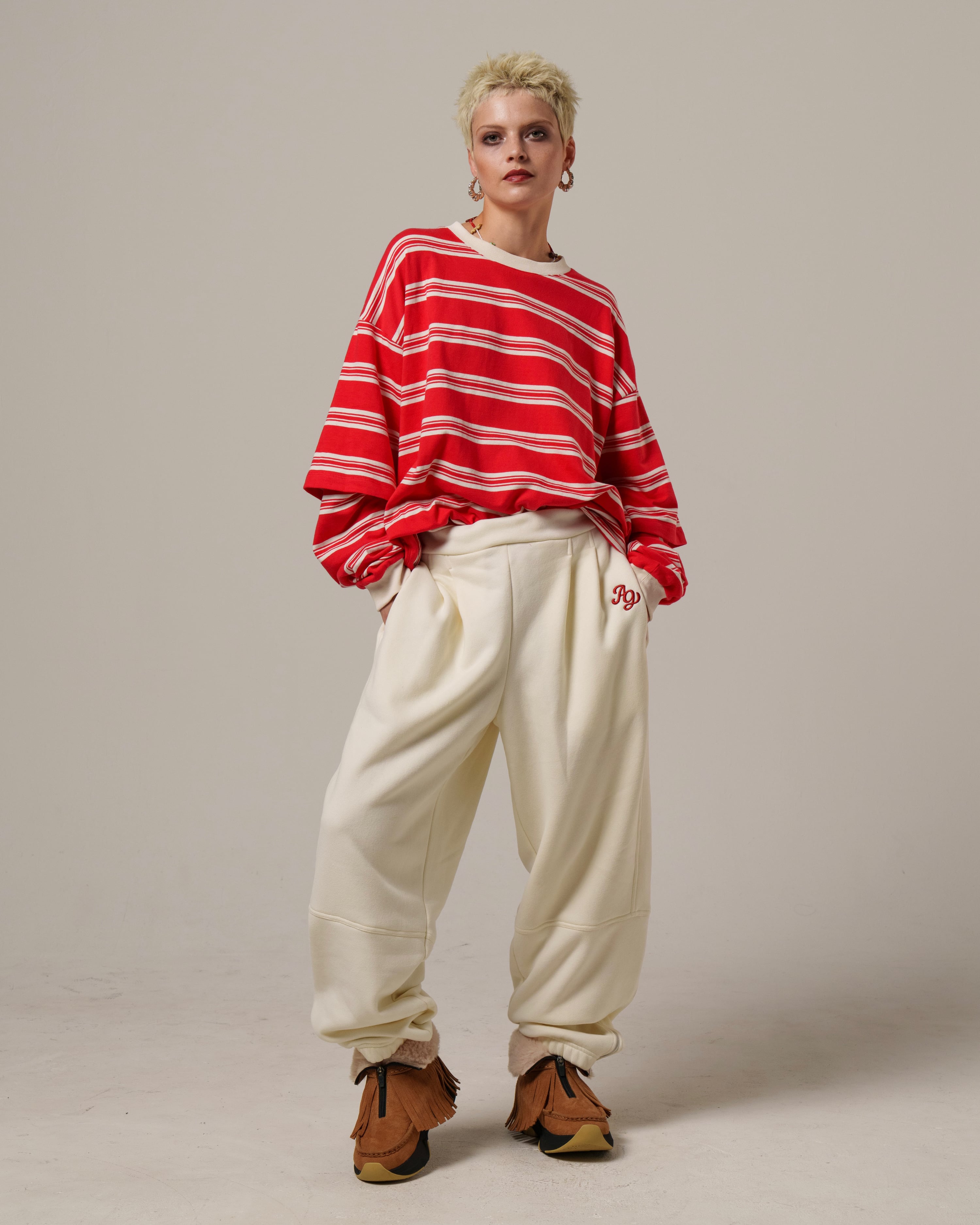 【Restock 10.4 Sat】Border Layered Long Sleeve T-shirt - White Musk