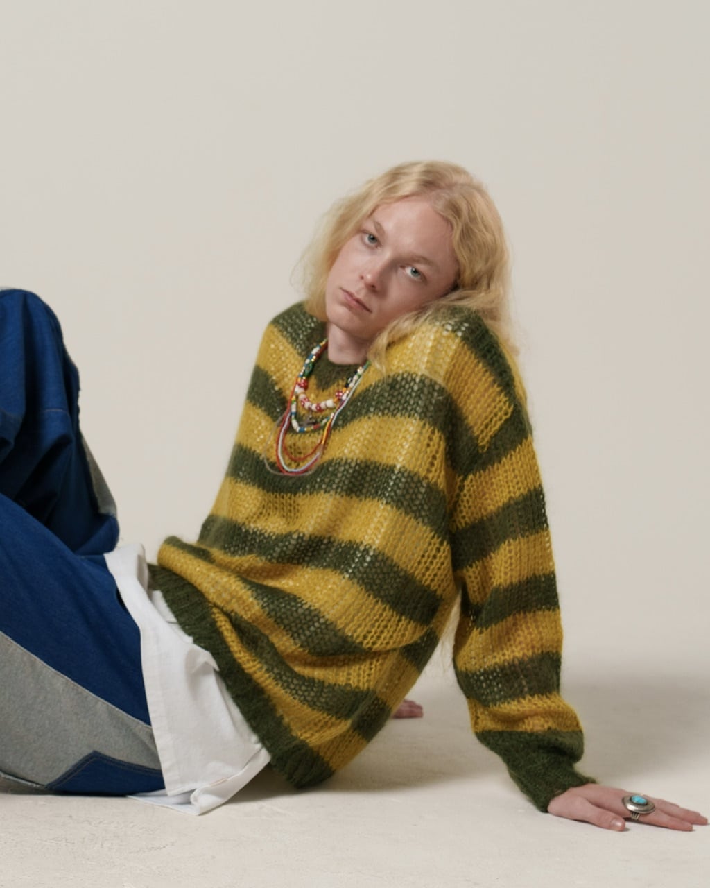 そんな思いと、ボーダー好きな夫婦からの着想をもとに誕生したメッシュモヘアニット。