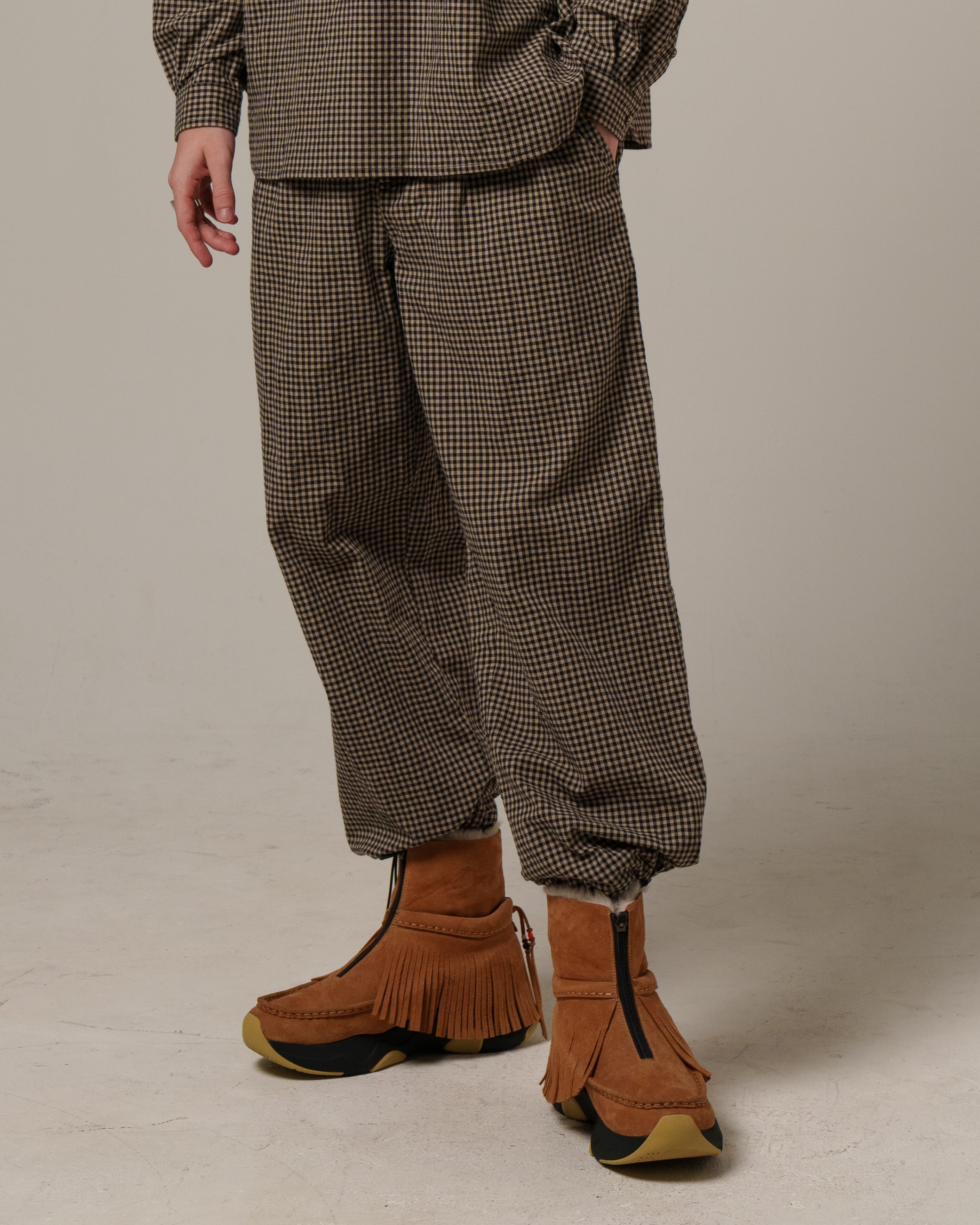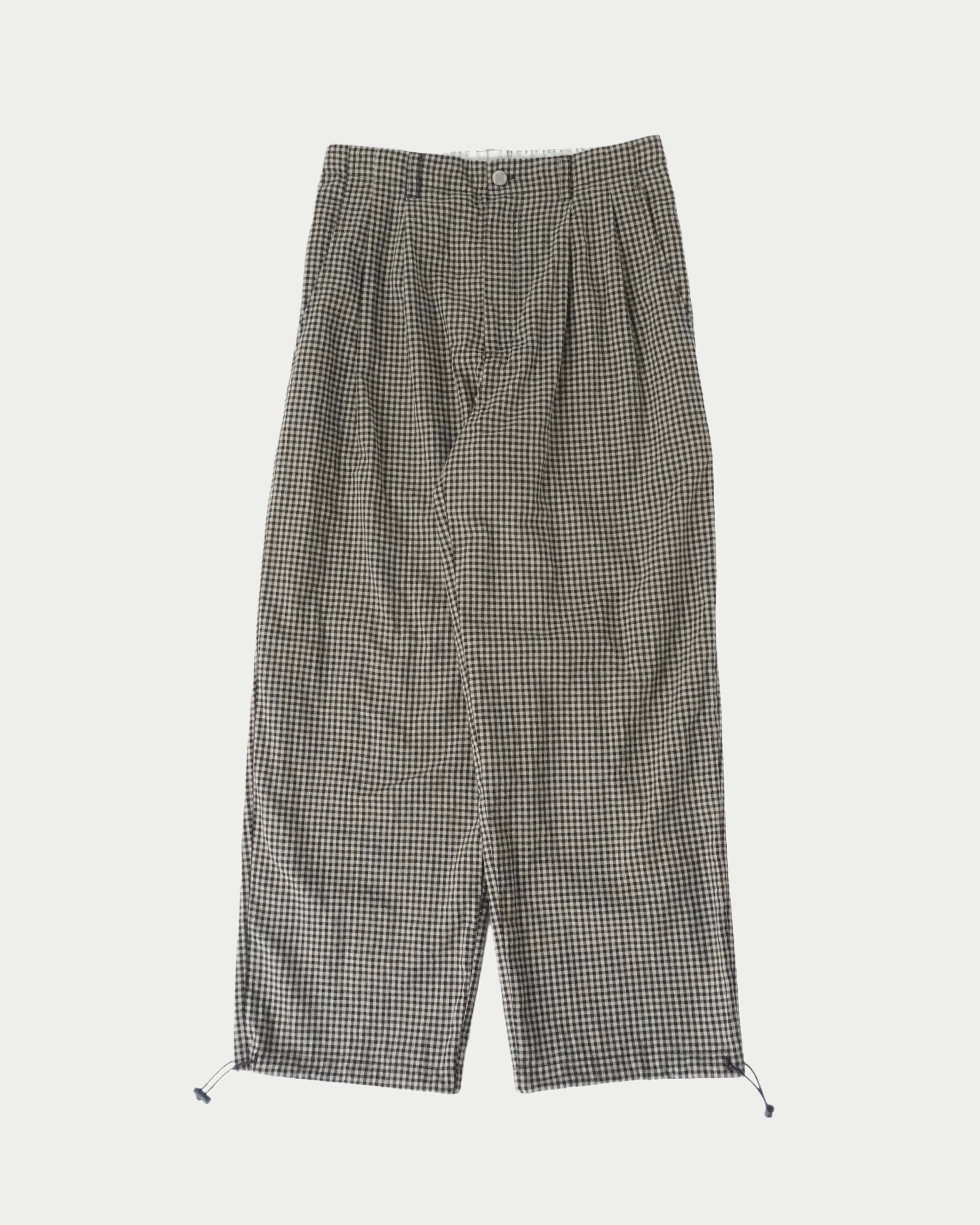 ウエストゴム&ドローコードの2WAY仕様で、快適な着心地と自由なシルエットを両立したファブリックパンツ。