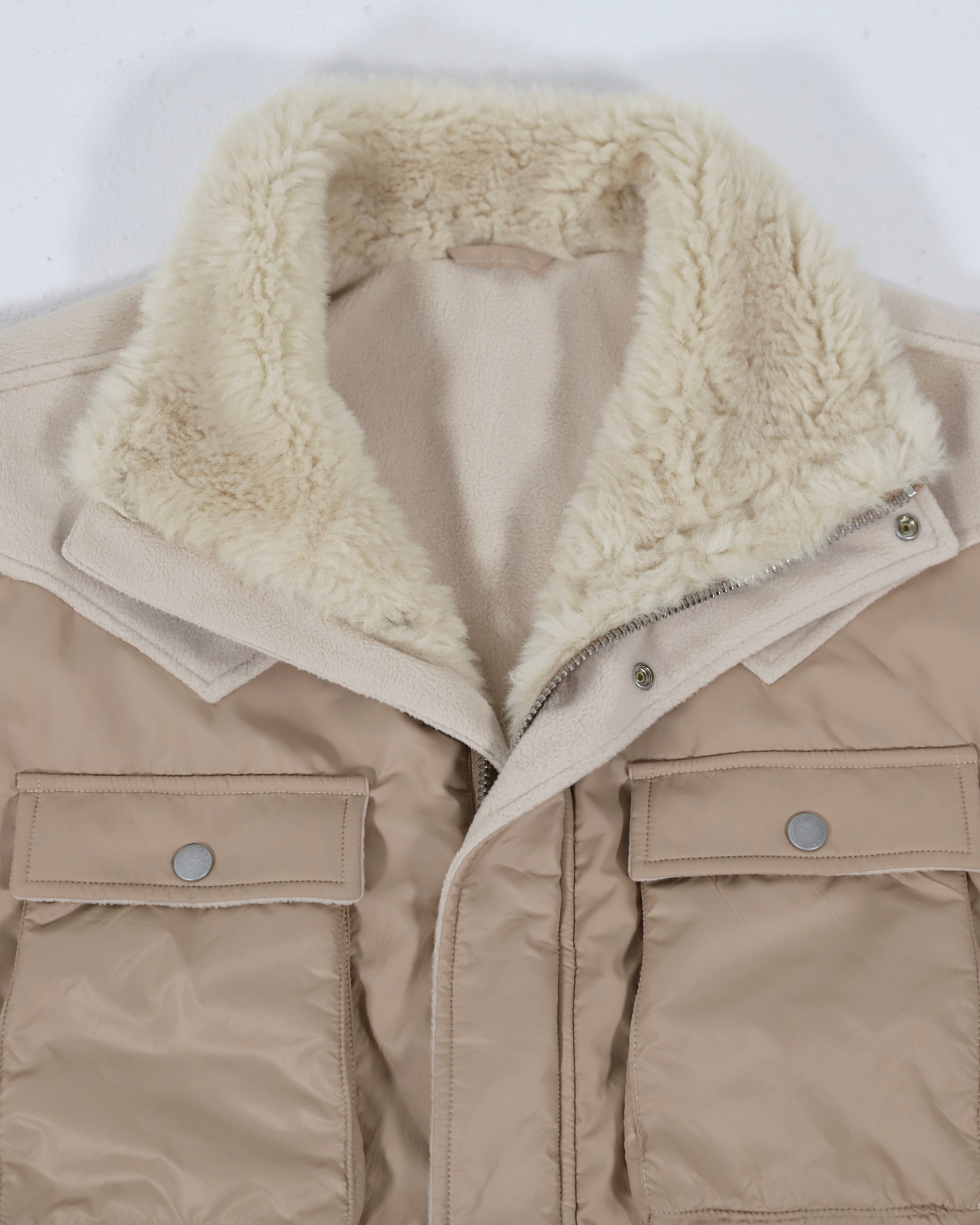薄く軽い表地と、ボアの厚みをハイブリッドさせたこの組み合わせは、