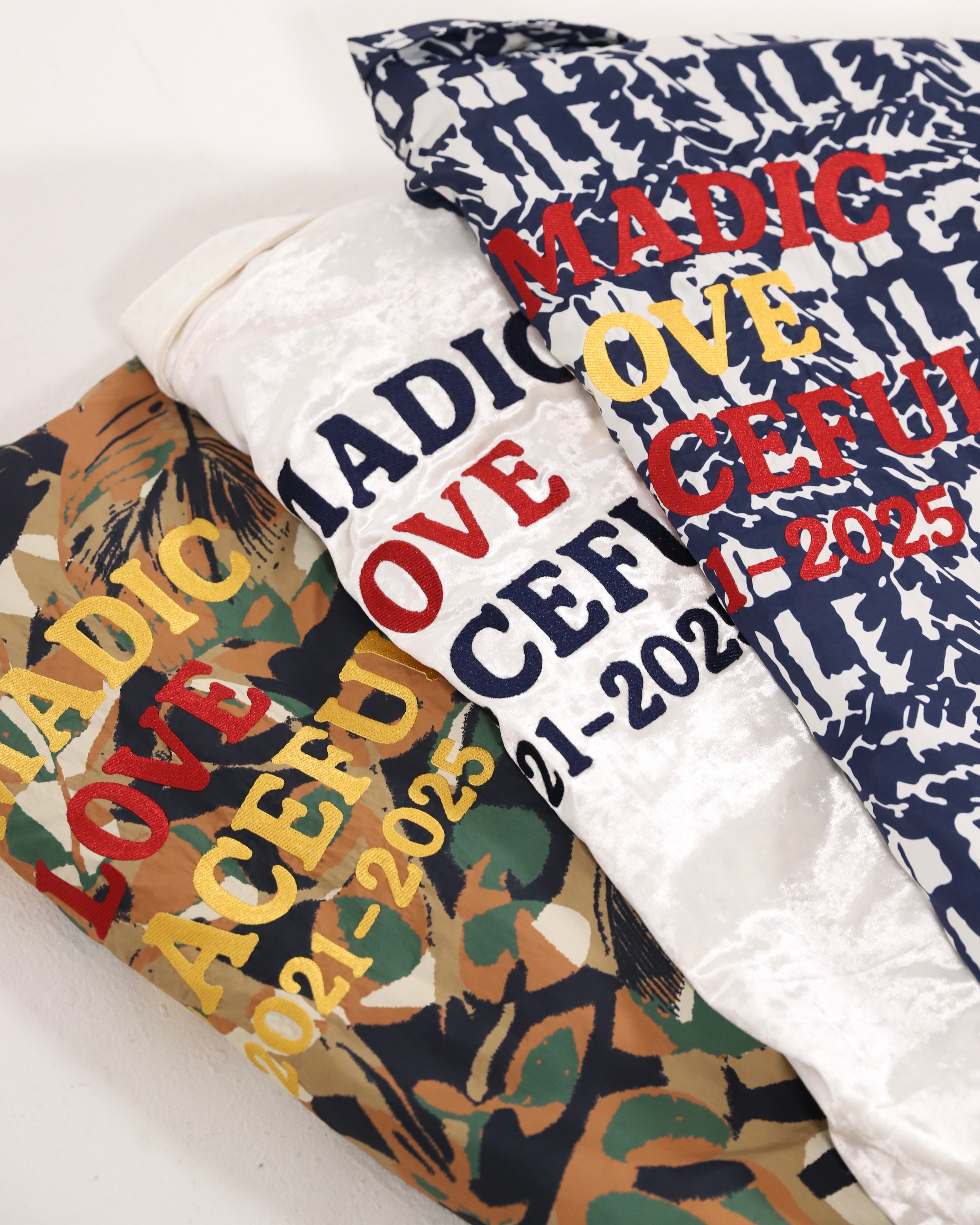 ・背面にはブランドテーマ**“NOMADIC LOVE”を刺繍。