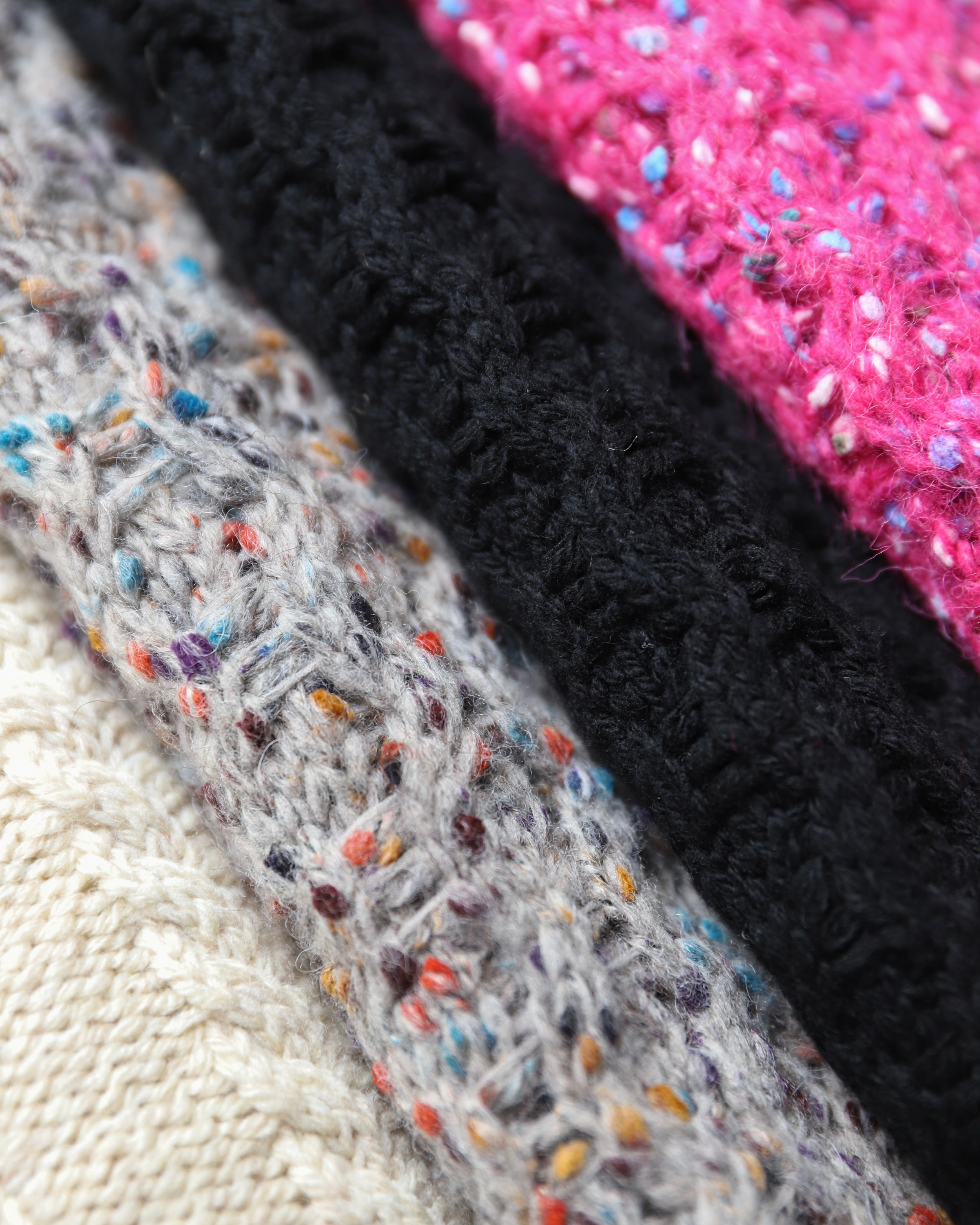 -表情のある糸を使用し、ふっくらとしたケーブル編みに仕上げた一品