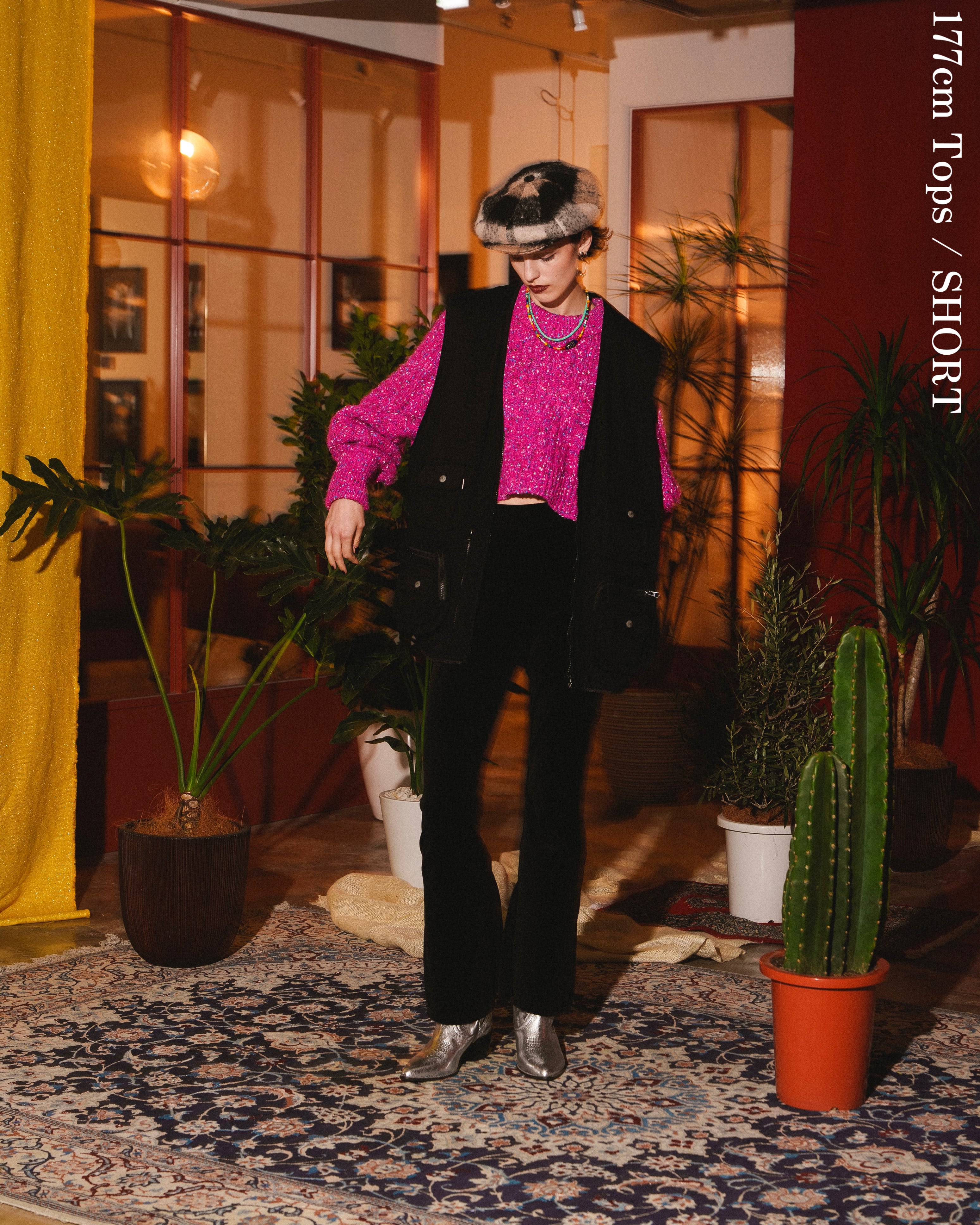 -素材:フューシャピンク・グレージュ / ポリエステル76% アクリル16% ウール8%