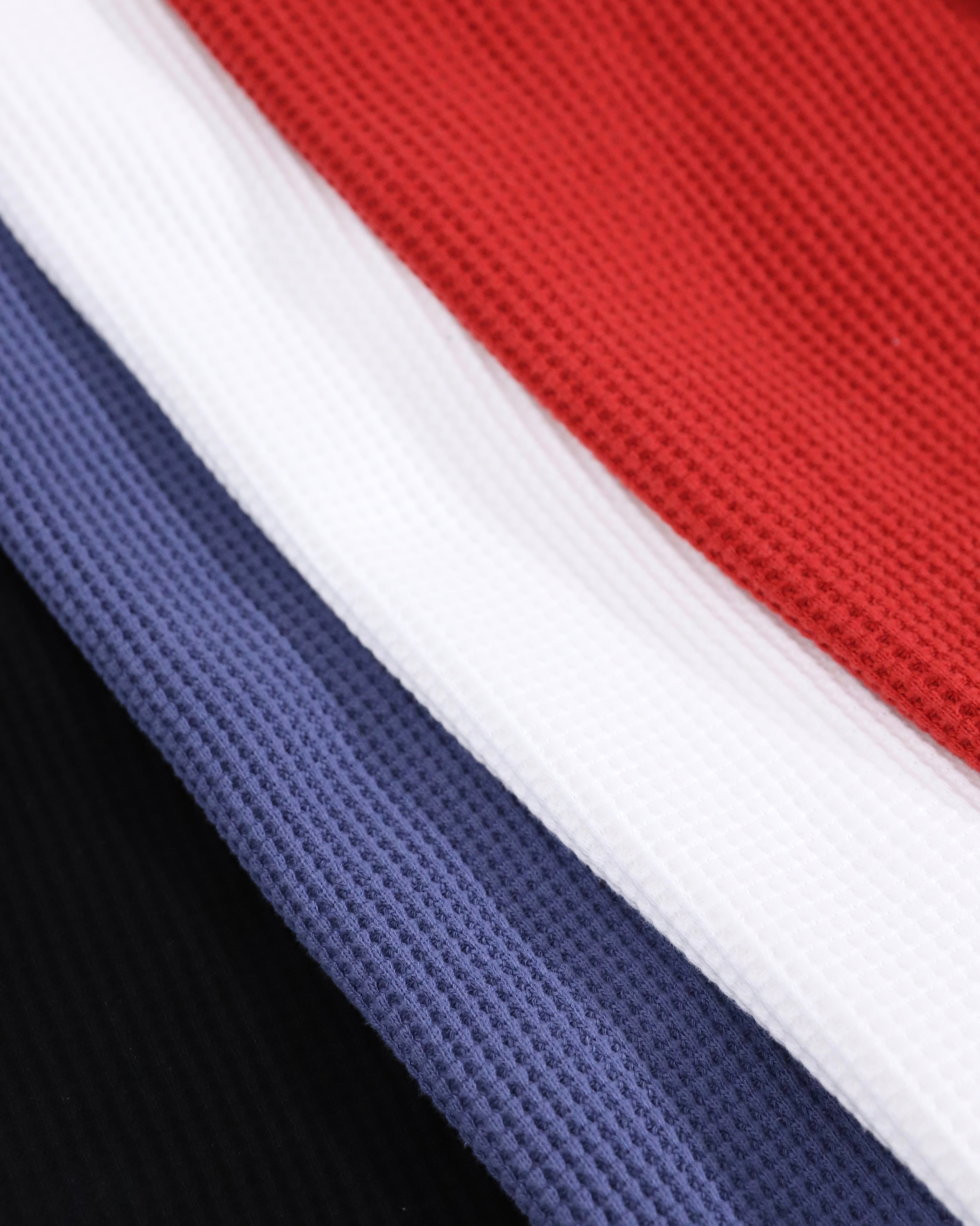程よい厚みと柔らかさを備えたワッフル生地に、抜け感を生むディテールを加えた一枚。