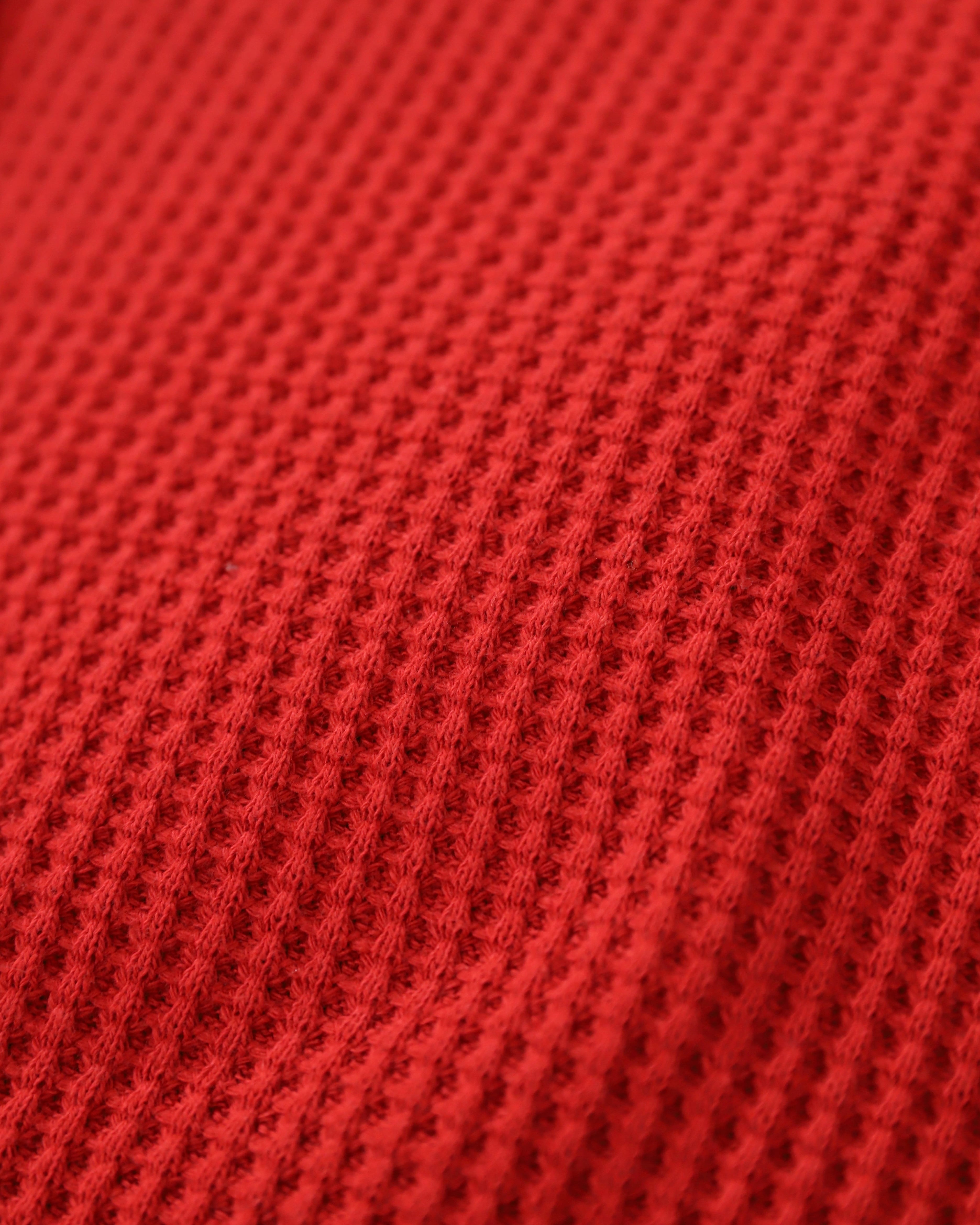 程よい厚みと柔らかさを備えたワッフル生地に、抜け感を生むディテールを加えた一枚。