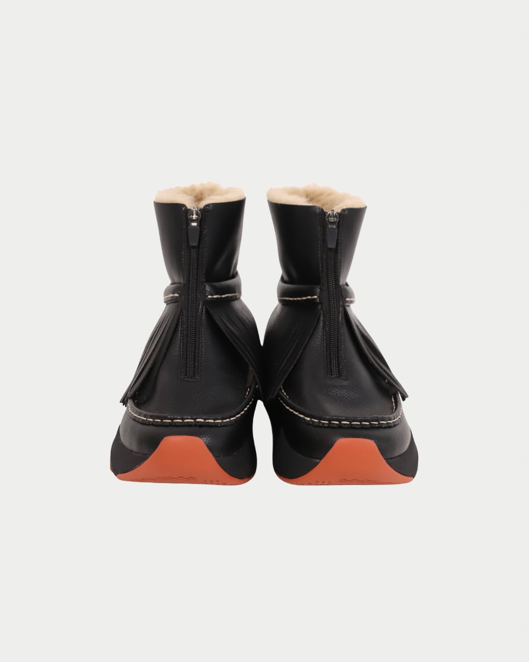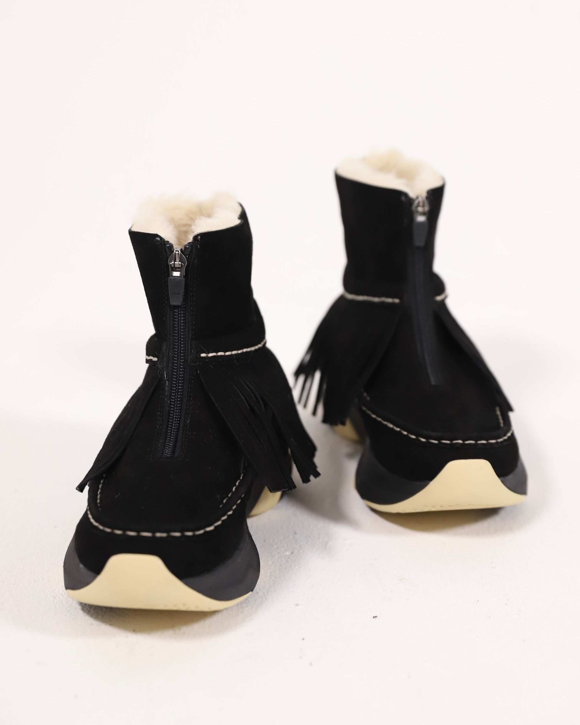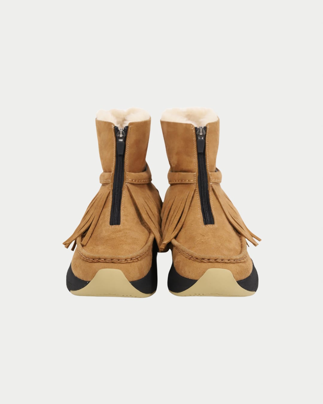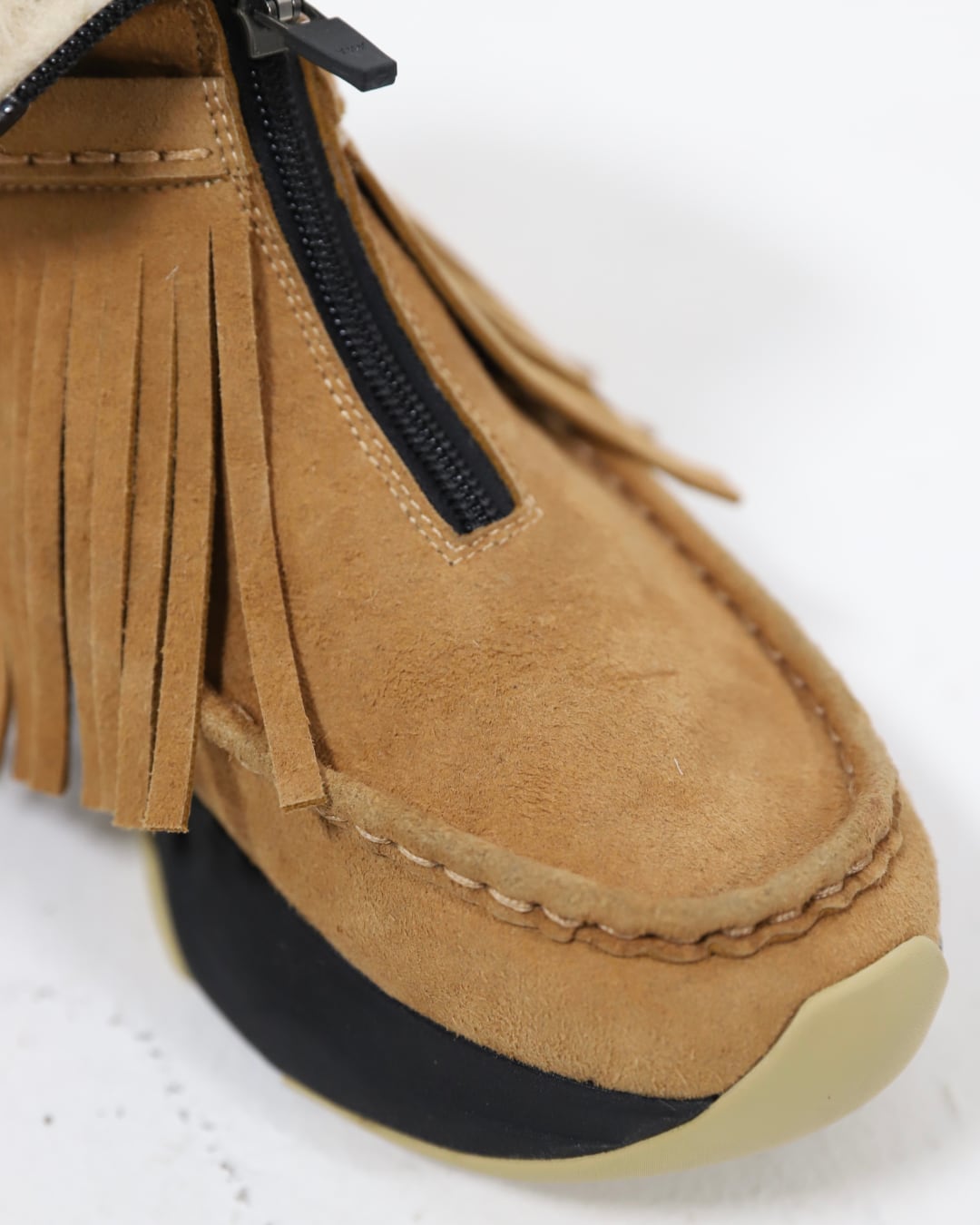 ・フリンジディテール:足首まわりを包み込むように配置されたスエードフリンジが、動きと存在感をプラス。