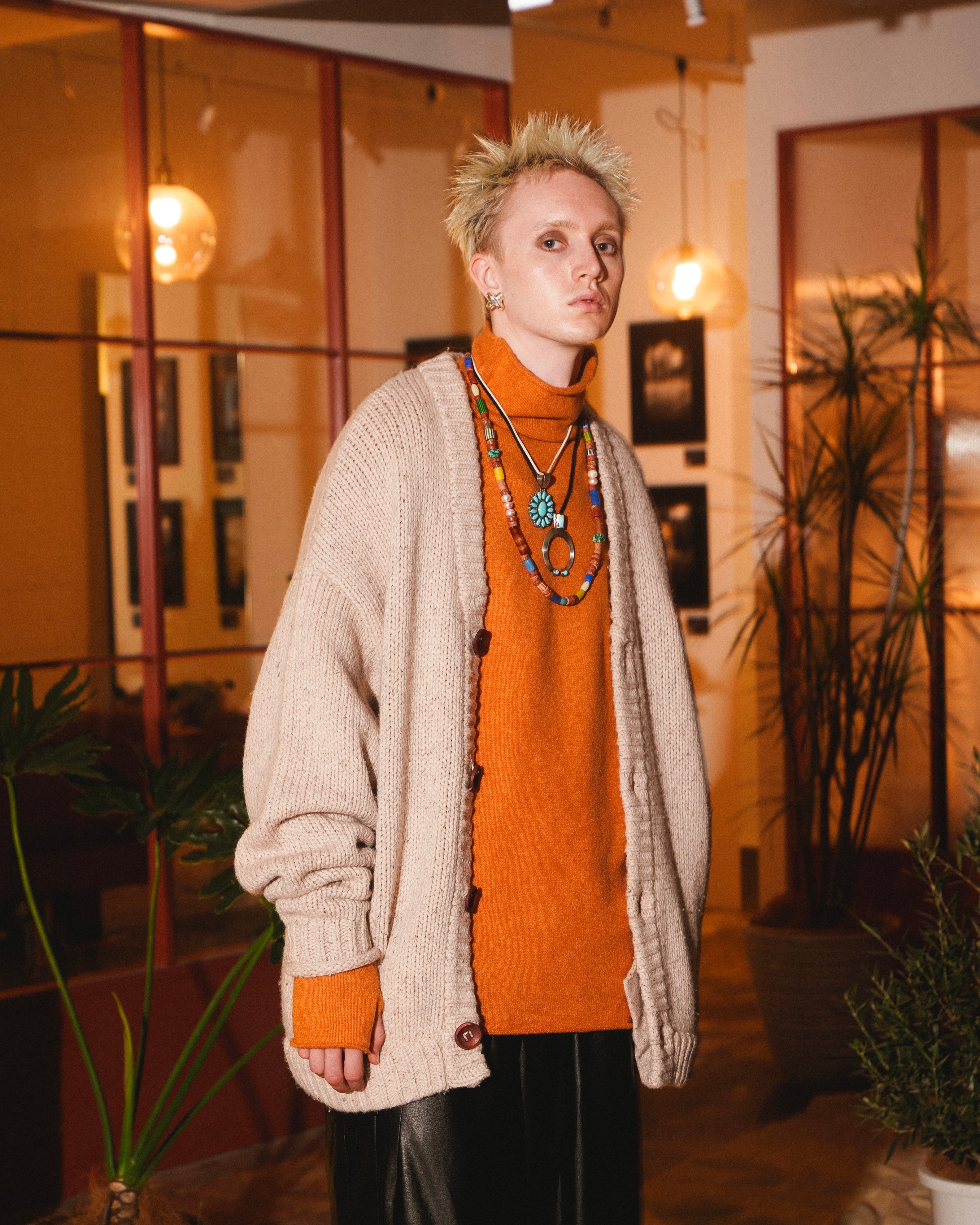 -首元、袖口、裾はメリヤス編みで編み立てることにより、くるんとした丸みがアクセント
