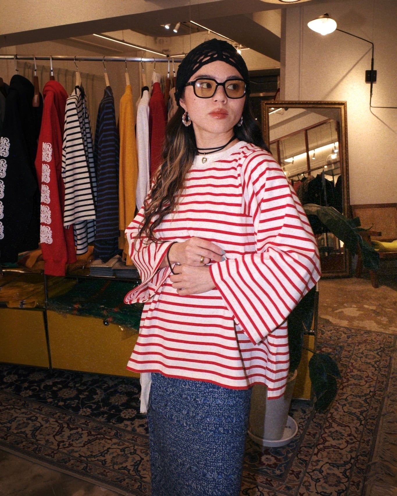 マリンボーダーオーバーロングスリーブ|ブラウン