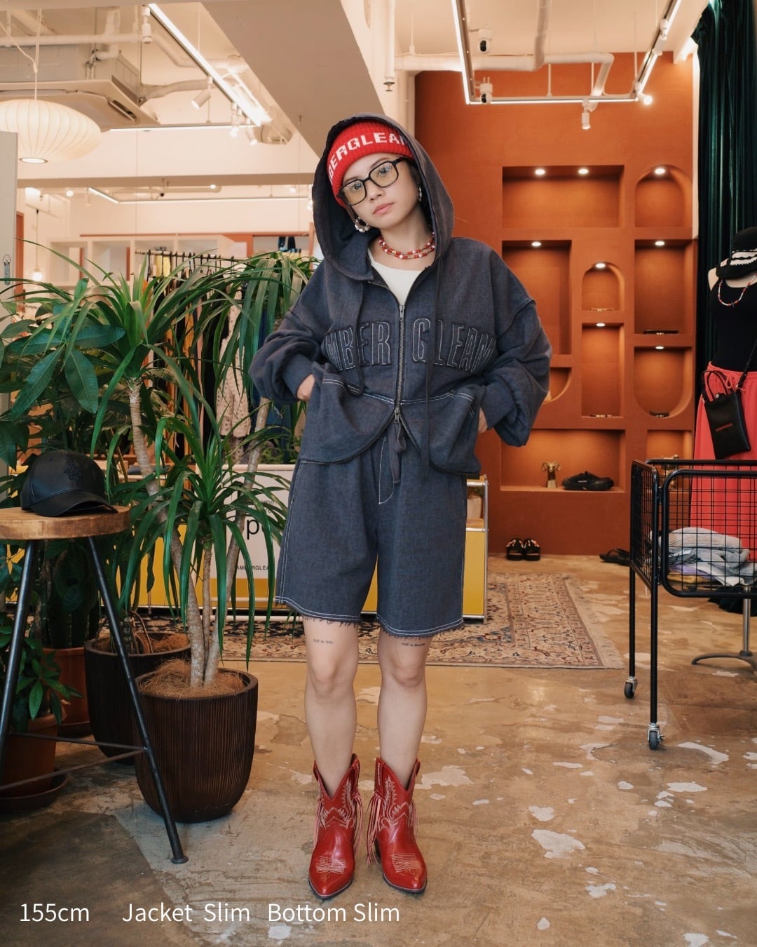 AMBERGLEAMらしい セットアップスタイルもおすすめです。