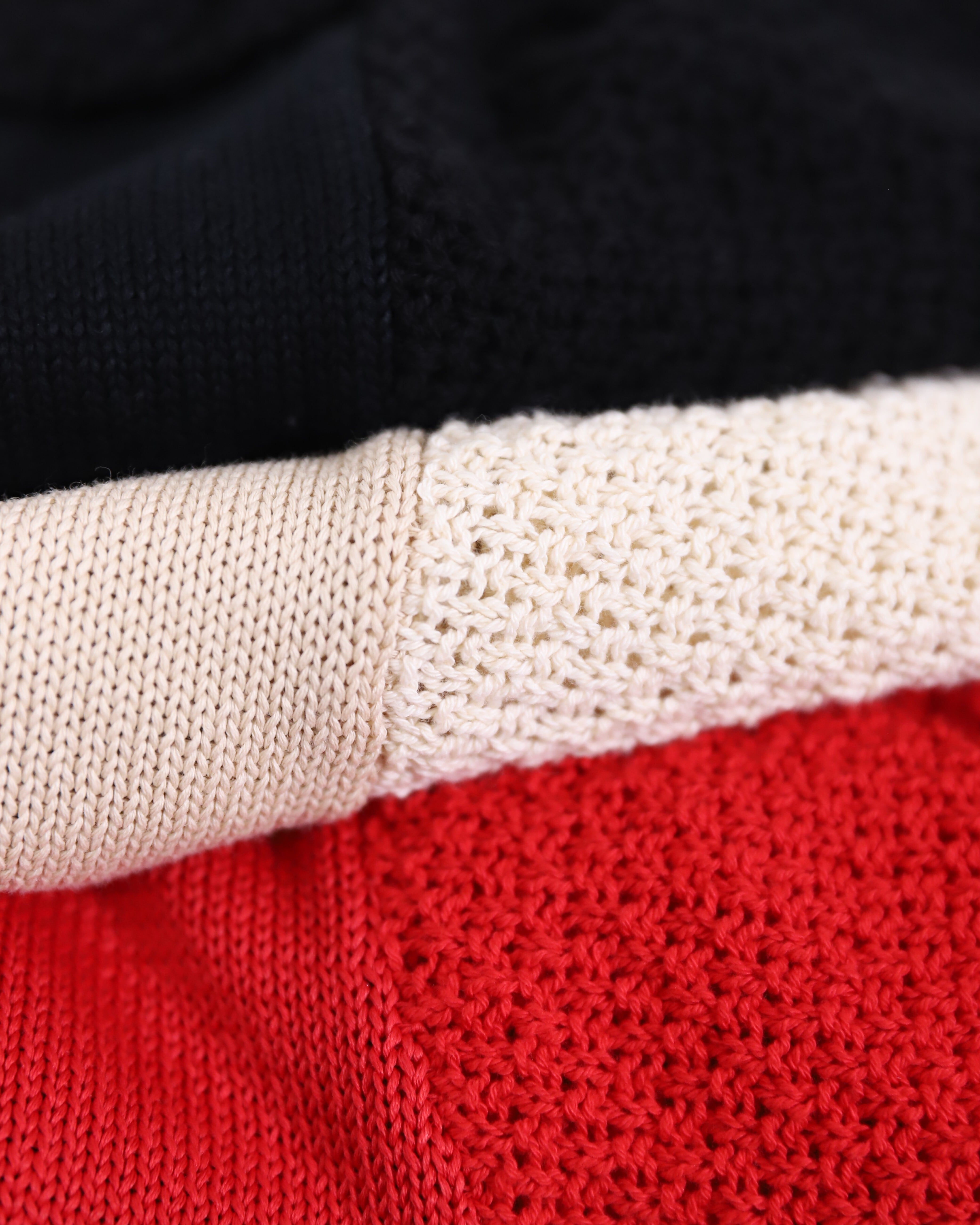 ・2ゲージ編みによる、立体感と奥行きのある表情
