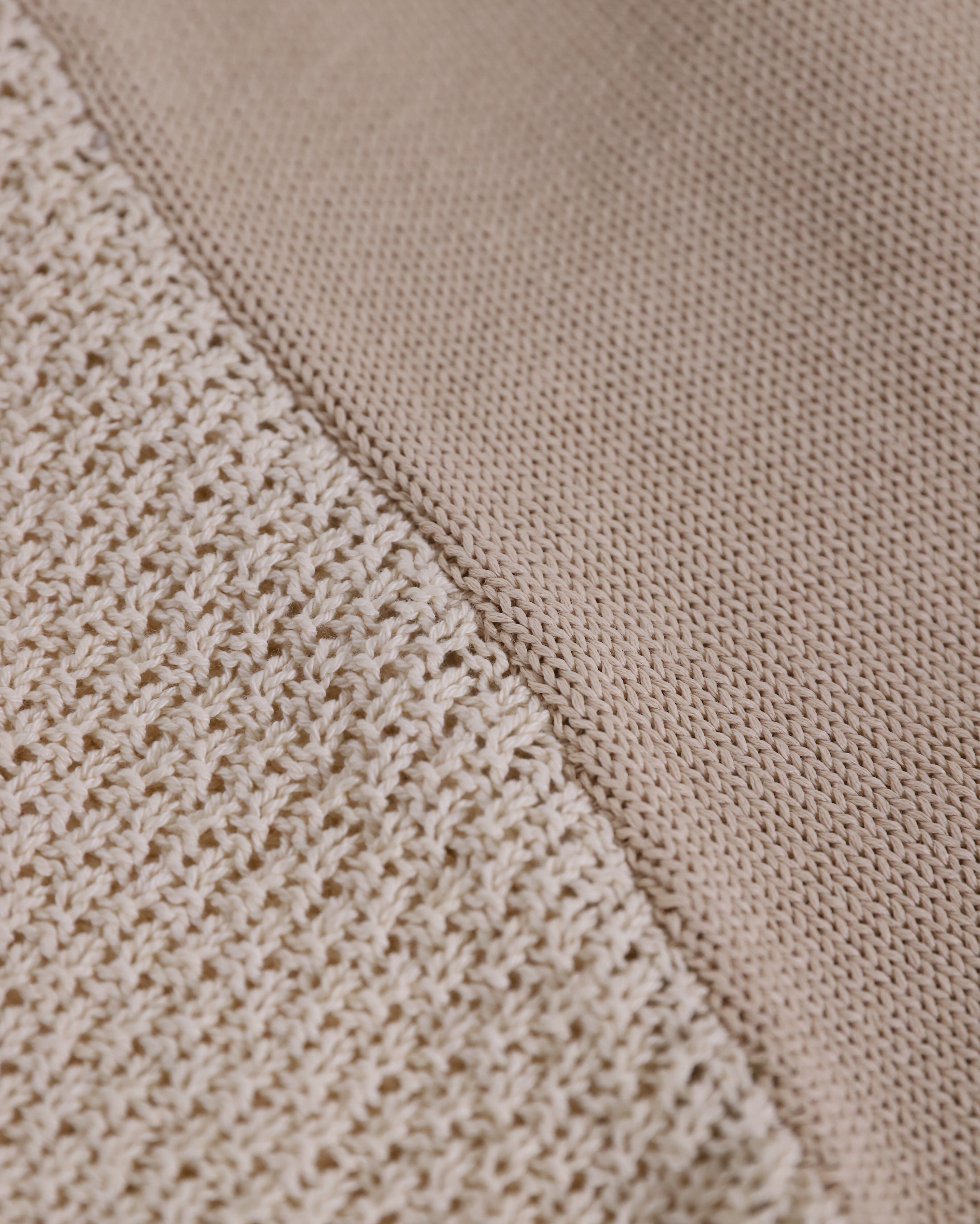 2ゲージならではの編みのコントラストを主役にデザインしました。