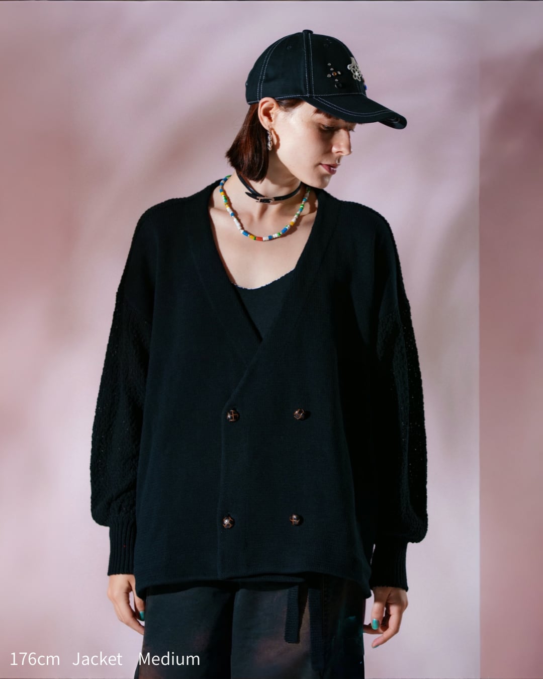 ・身頃はハリ感のある編地、袖は凹凸のある編地で切り替え