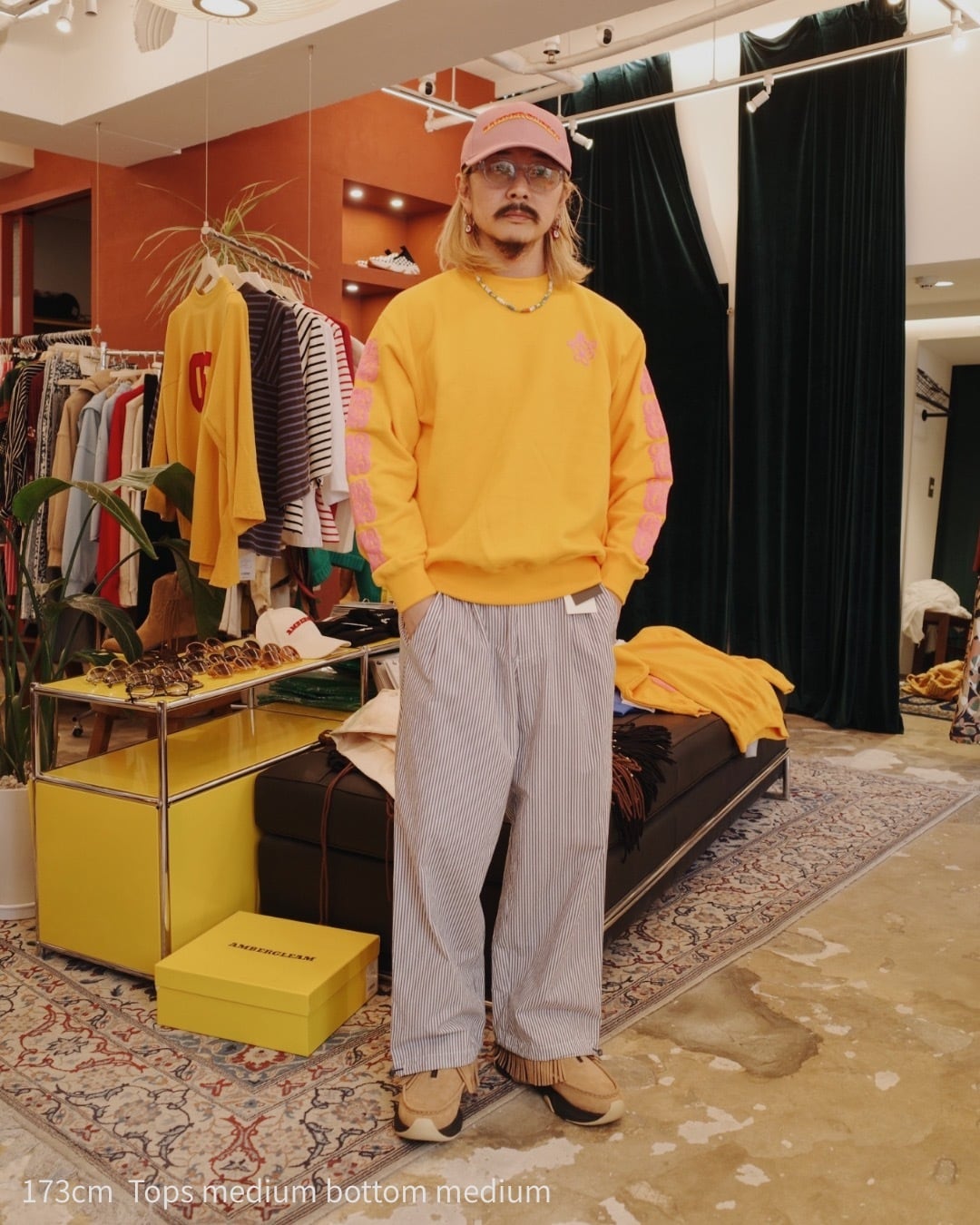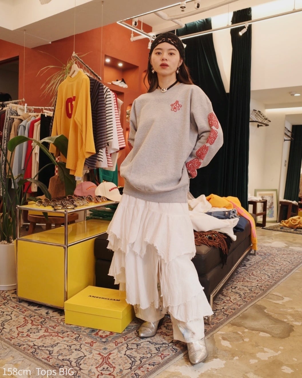 胸元には、AMBERGLEAM の象徴である 〈花ロゴ〉。