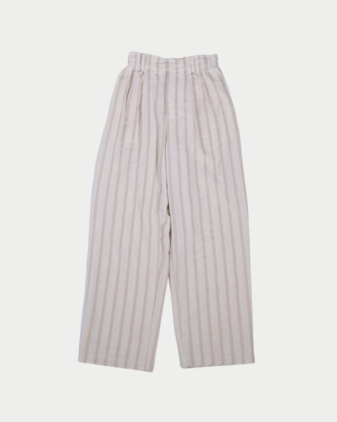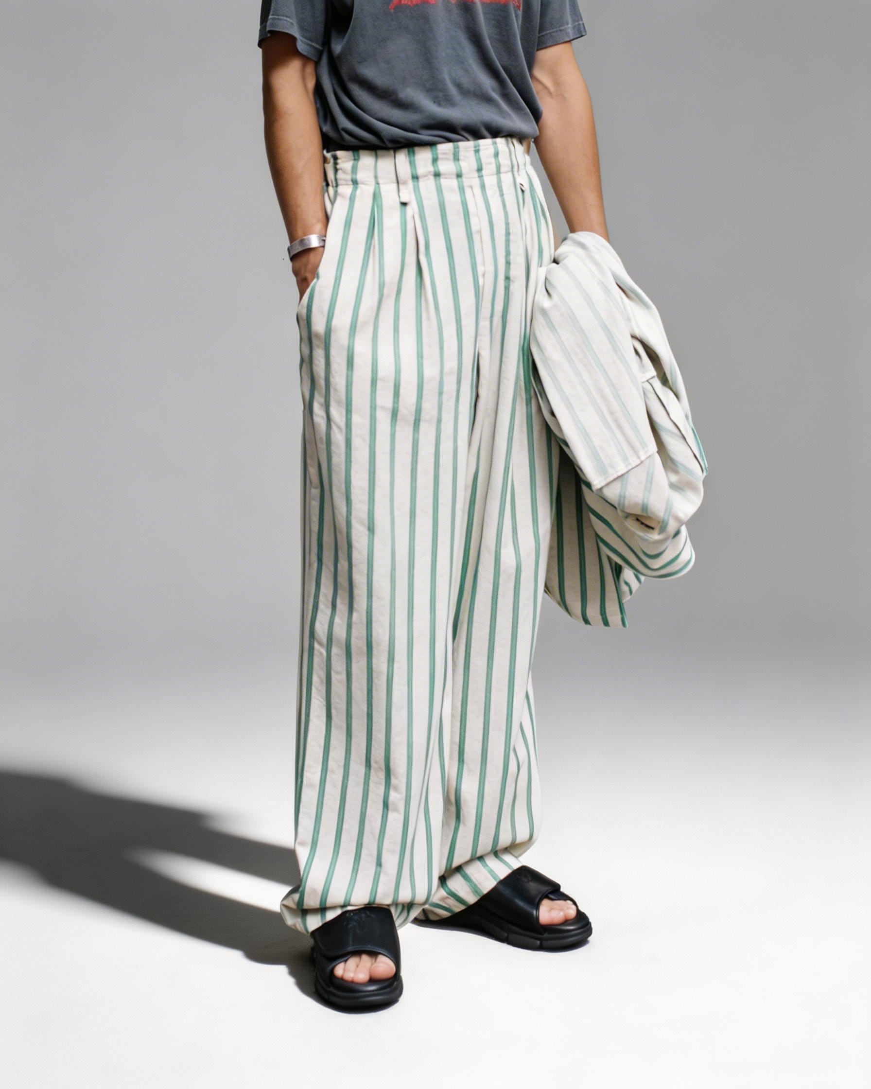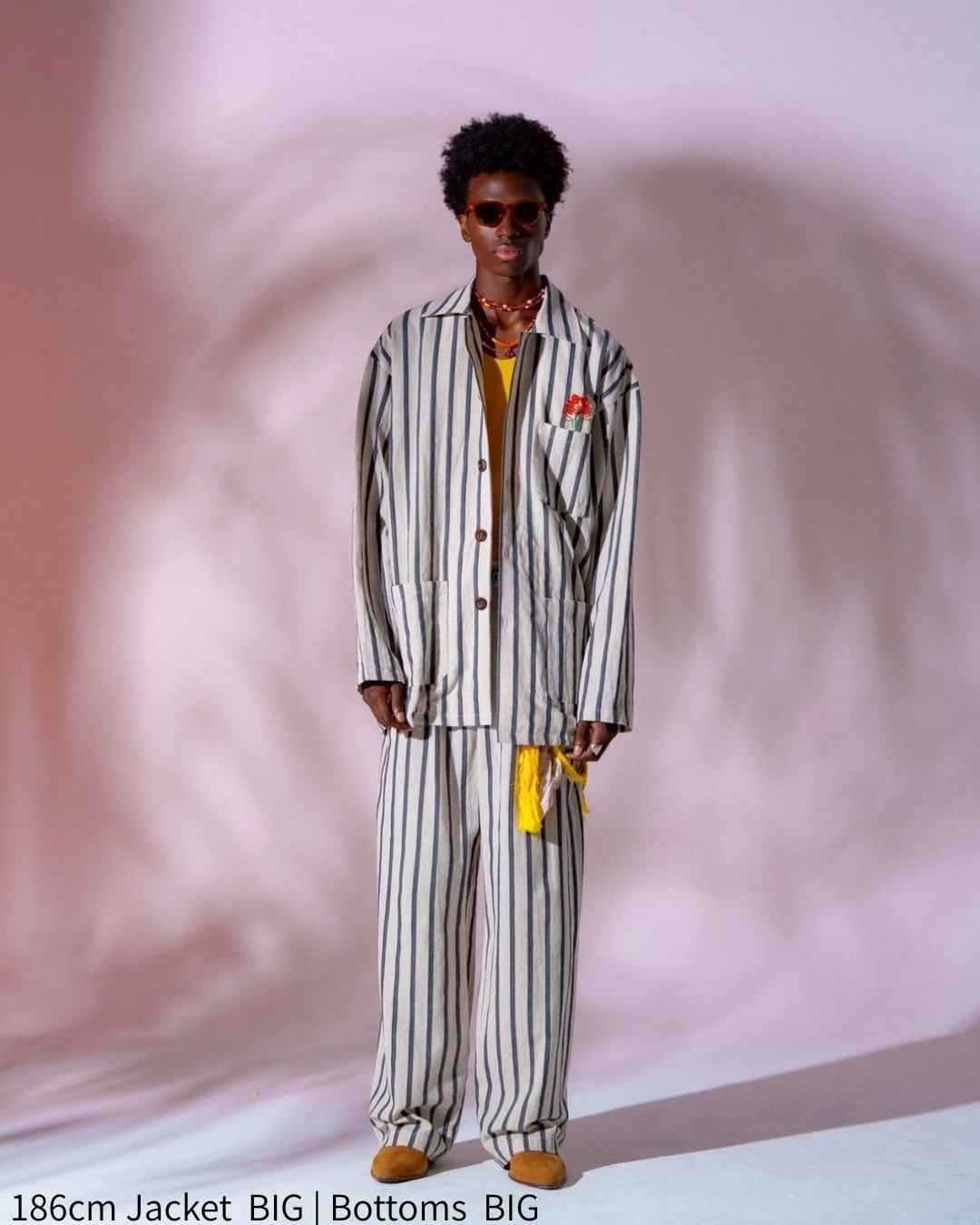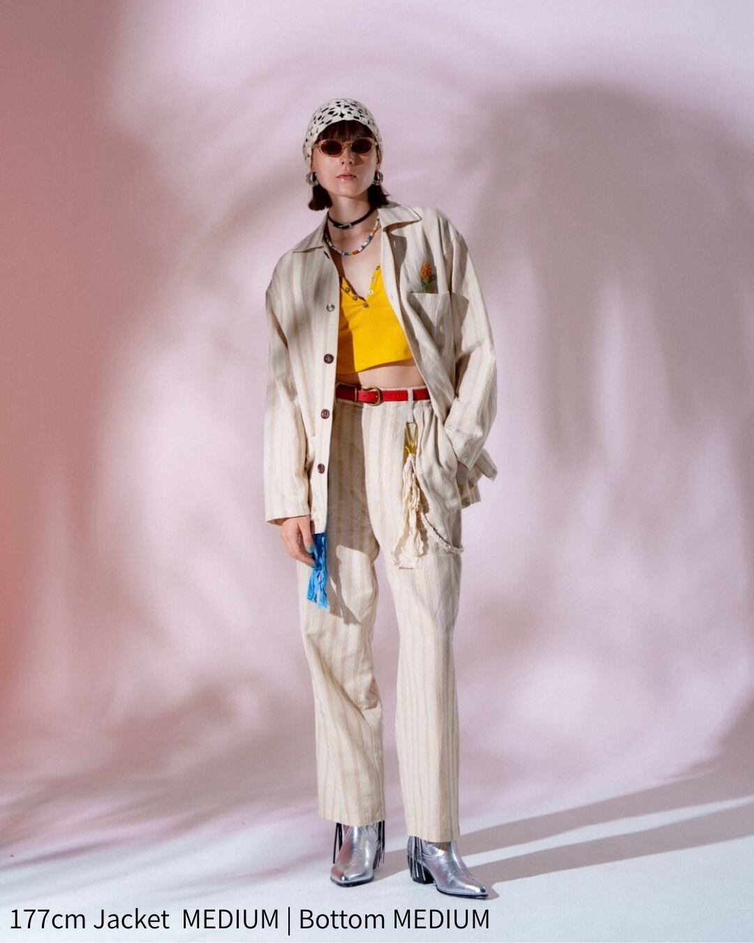 リネン混の軽やかなストライプ生地を使用し、フォーマルすぎない、