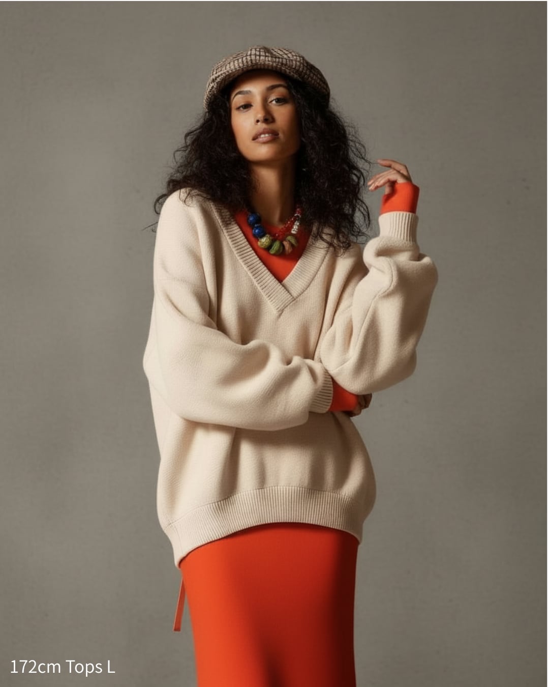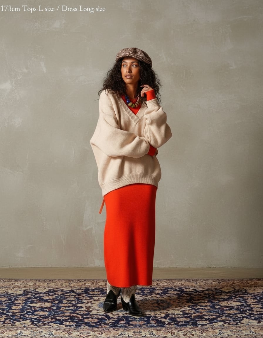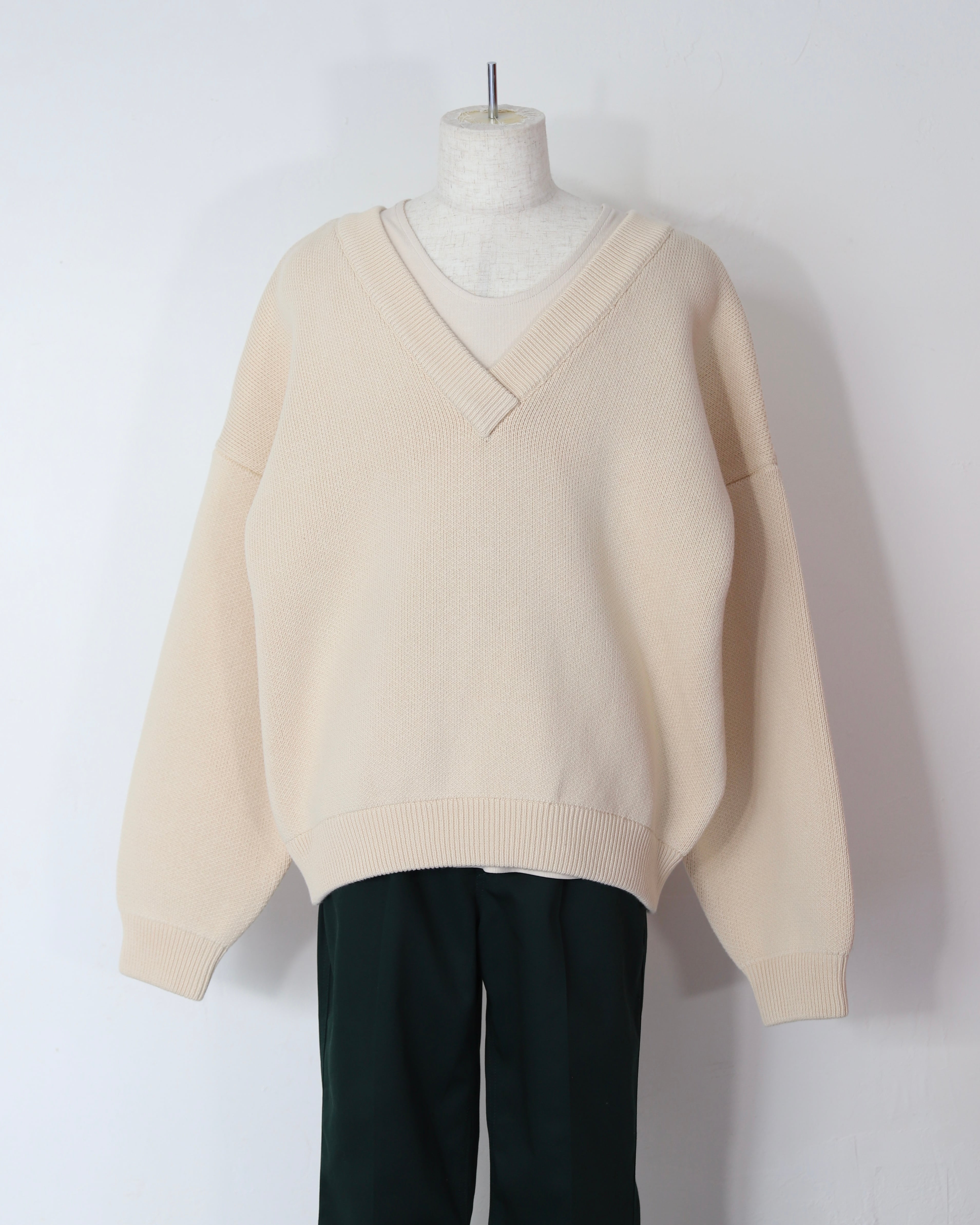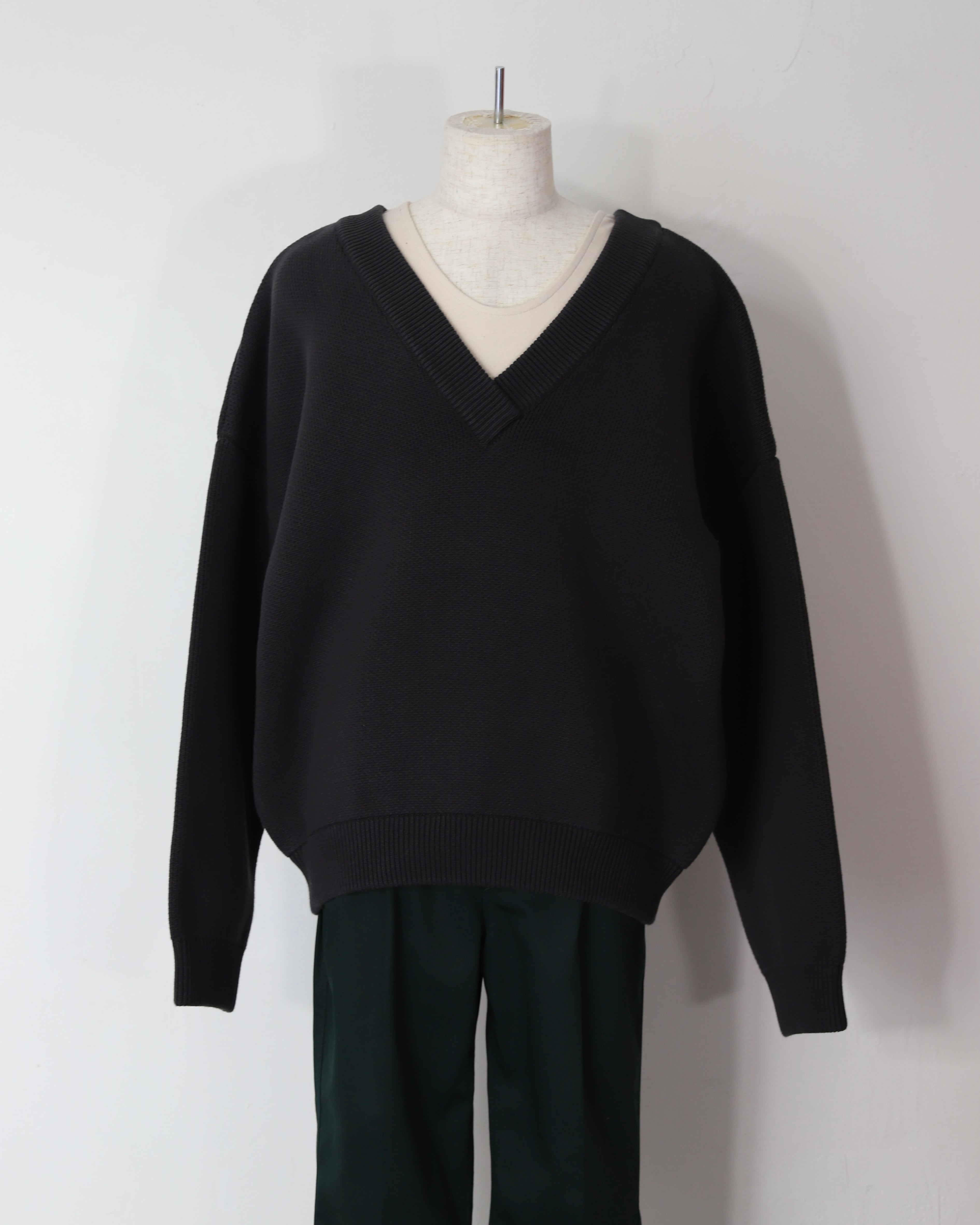 -深めのVネックとコロンとしたフォルム