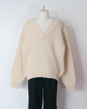 ラスト1点【L/バニラ】】コットンVネックセーター