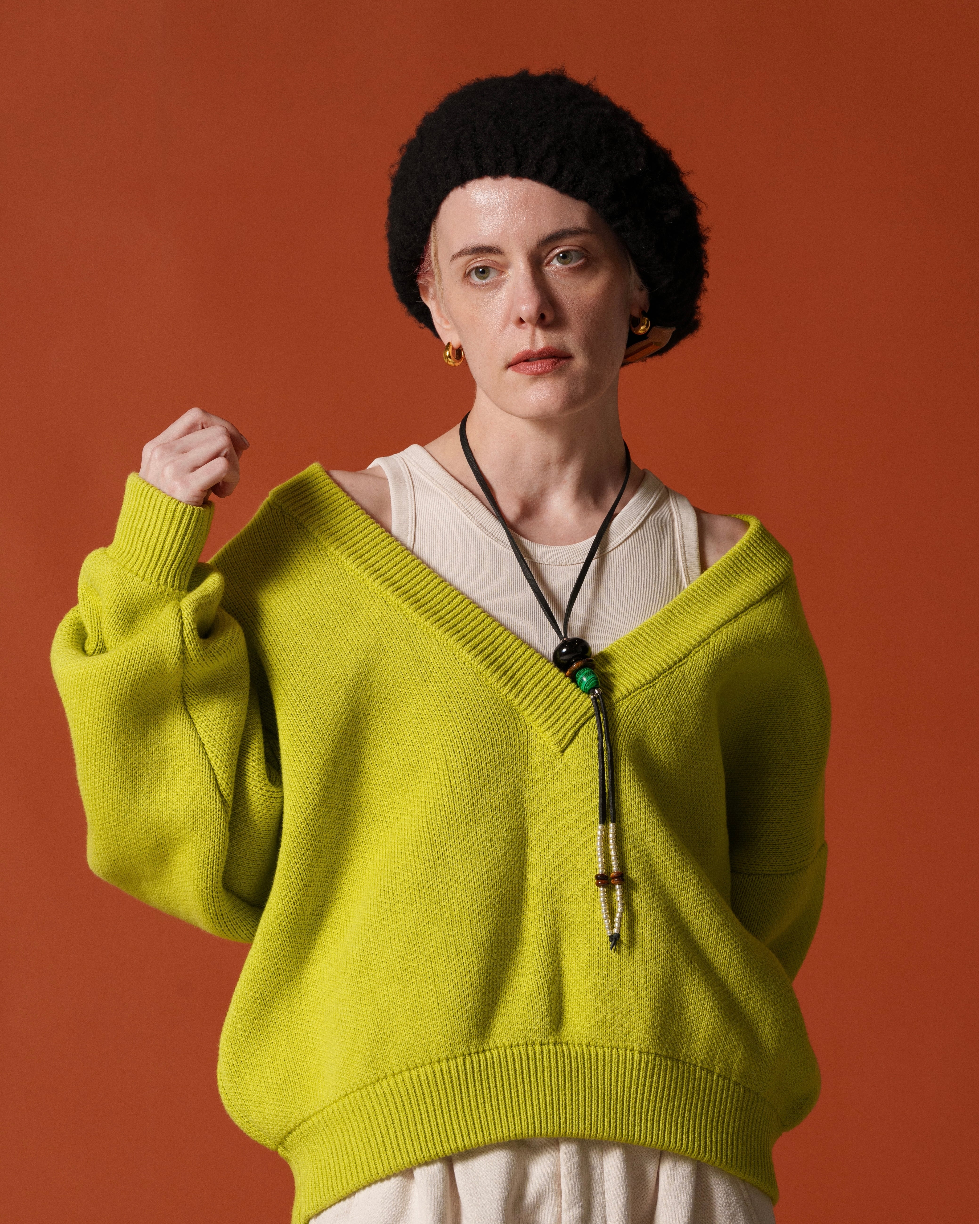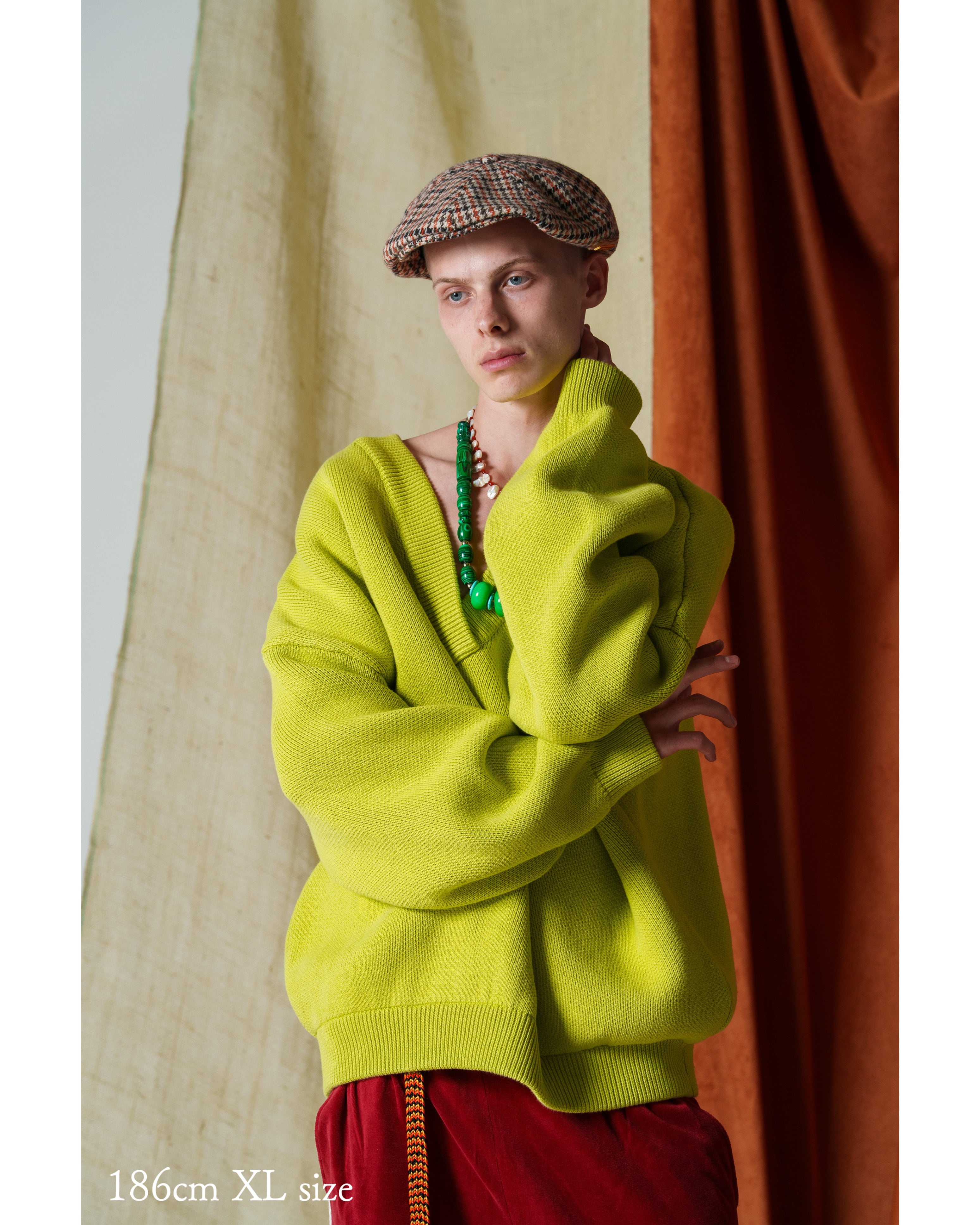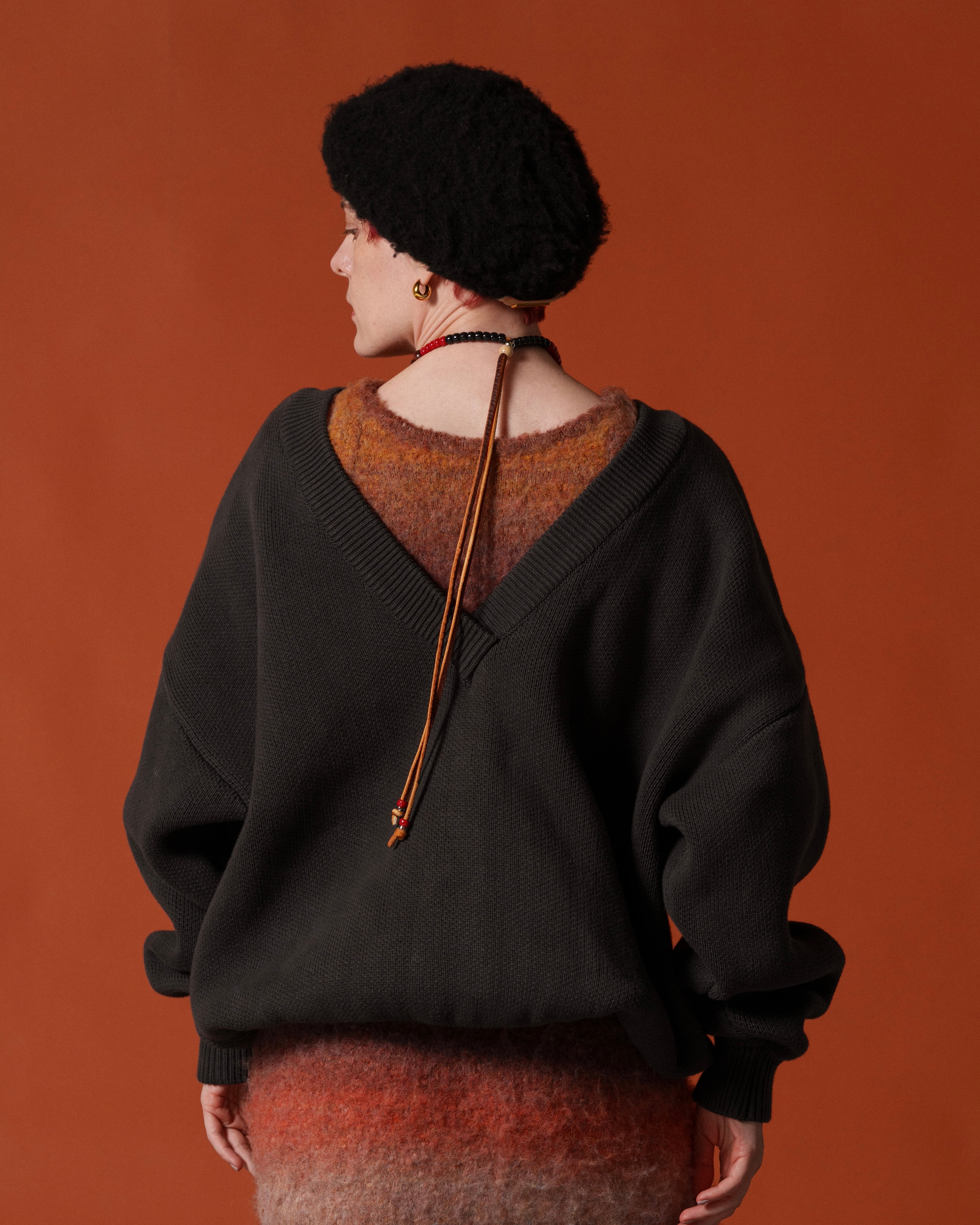 -深めのVネックとコロンとしたフォルム