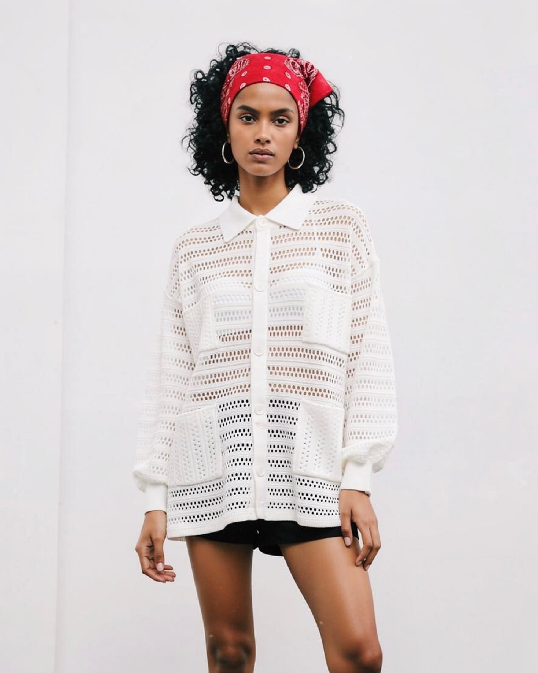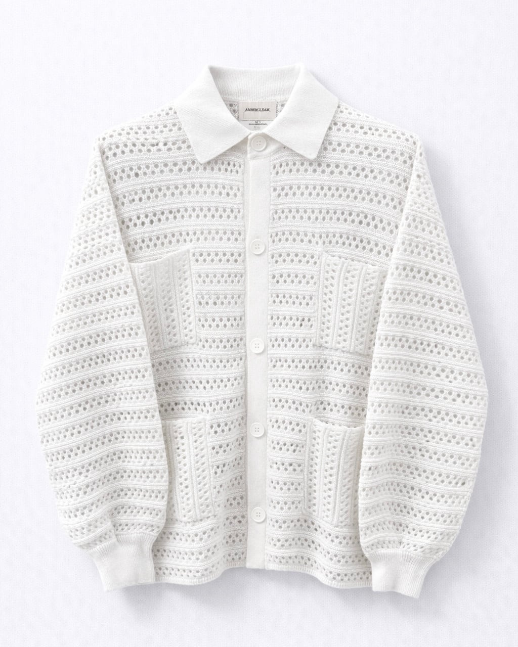 【4月上旬】和紙ブレンドアイレットカーディガン|ホワイトムスク