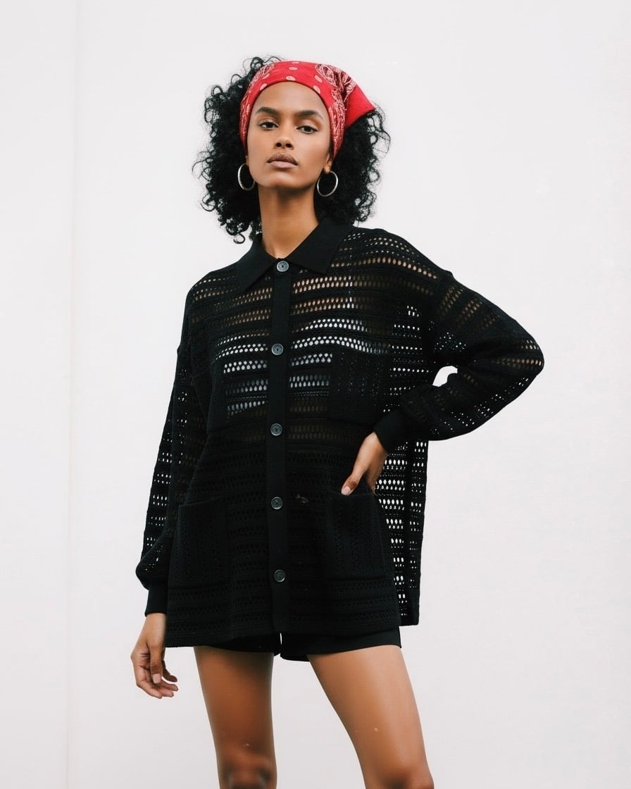 A. かぎ針ならではの編地による透け感を楽しめます。インナー着用をおすすめします。