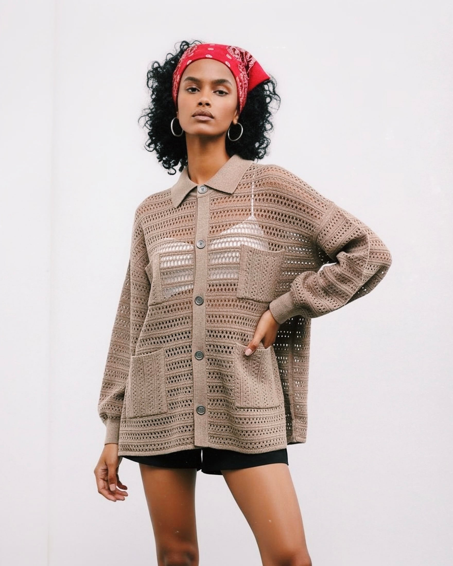 【4月上旬】和紙ブレンドアイレットカーディガン|サンド