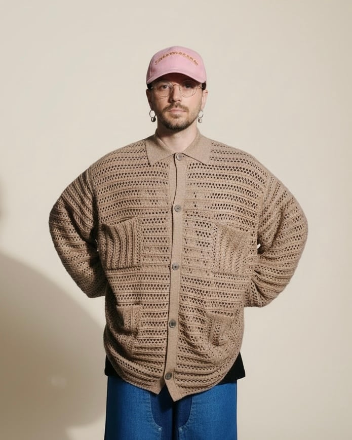 和紙ブレンドアイレットカーディガン |ブラウン