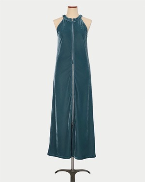 【4月上旬】マルチWAYベロアホルターネックドレス|ダスティーブルー