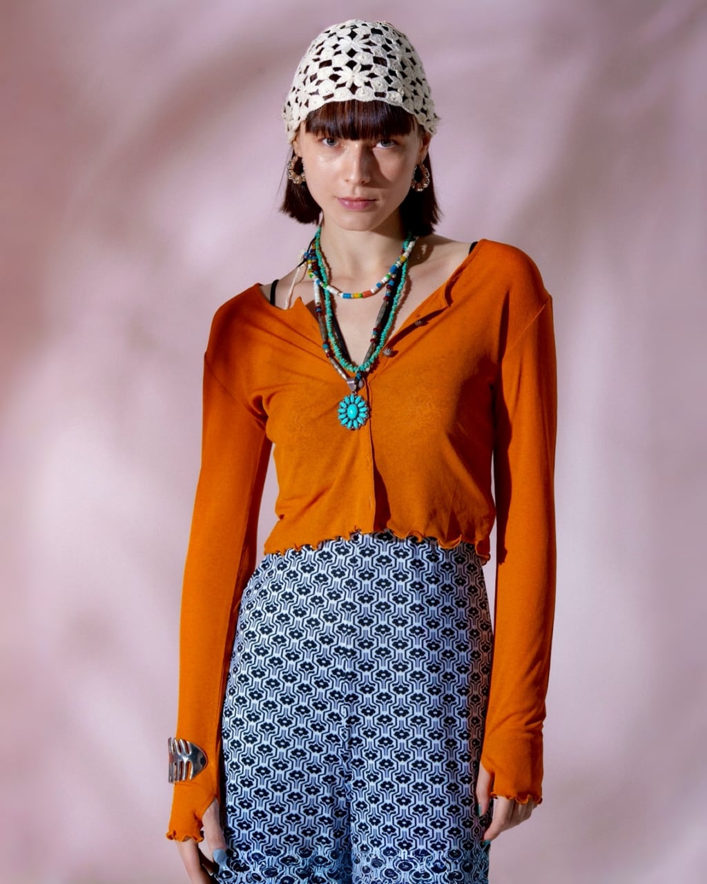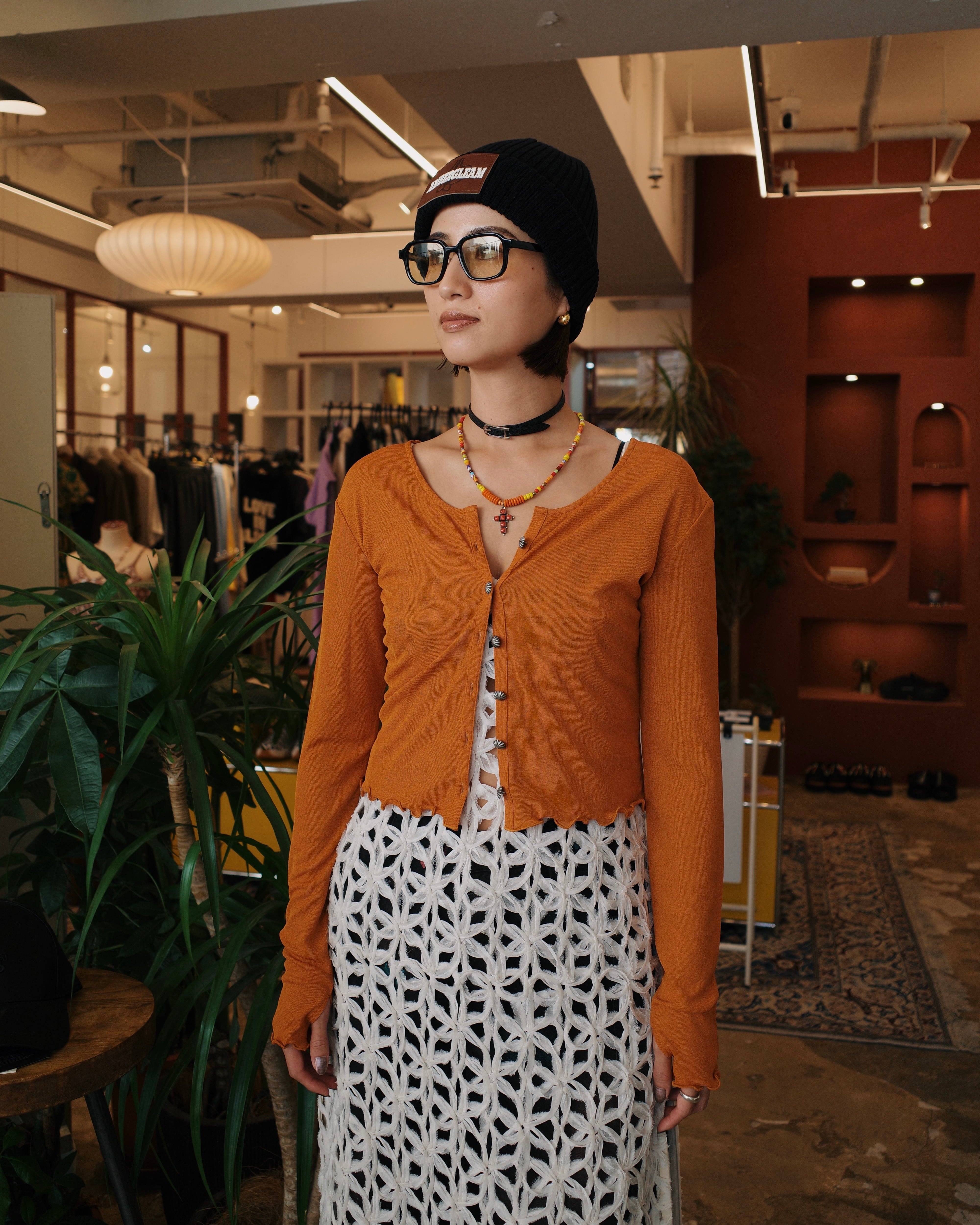 【4月上旬】2WAYシアーコンチョカーディガン|オレンジ
