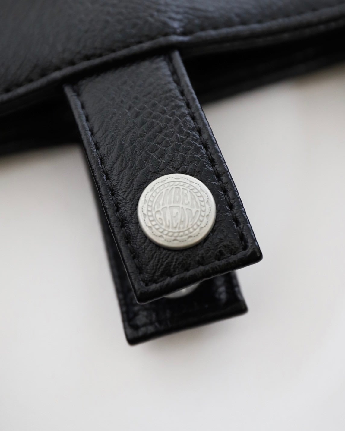 -AMBERGLEAMのロゴ入りオリジナルスナップボタン付き