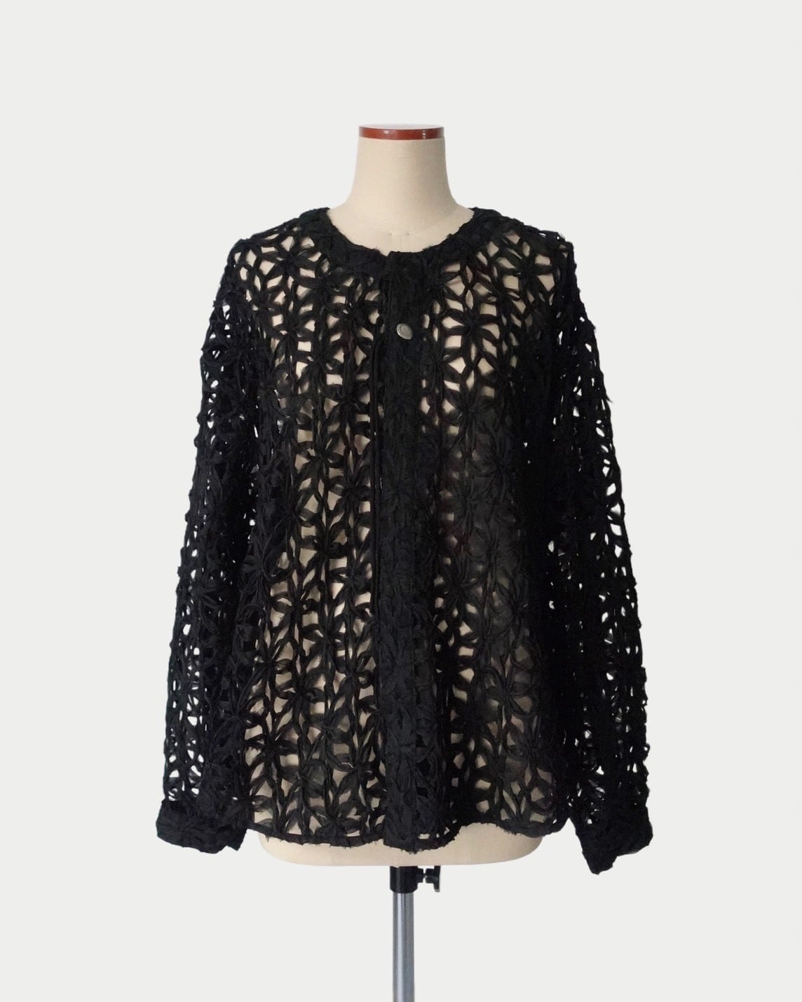 ~生地をテープ状に裁断し、花柄そのものを構築した一着。