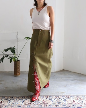 【DeadStock】Concho Slit Skirt / Khaki / S