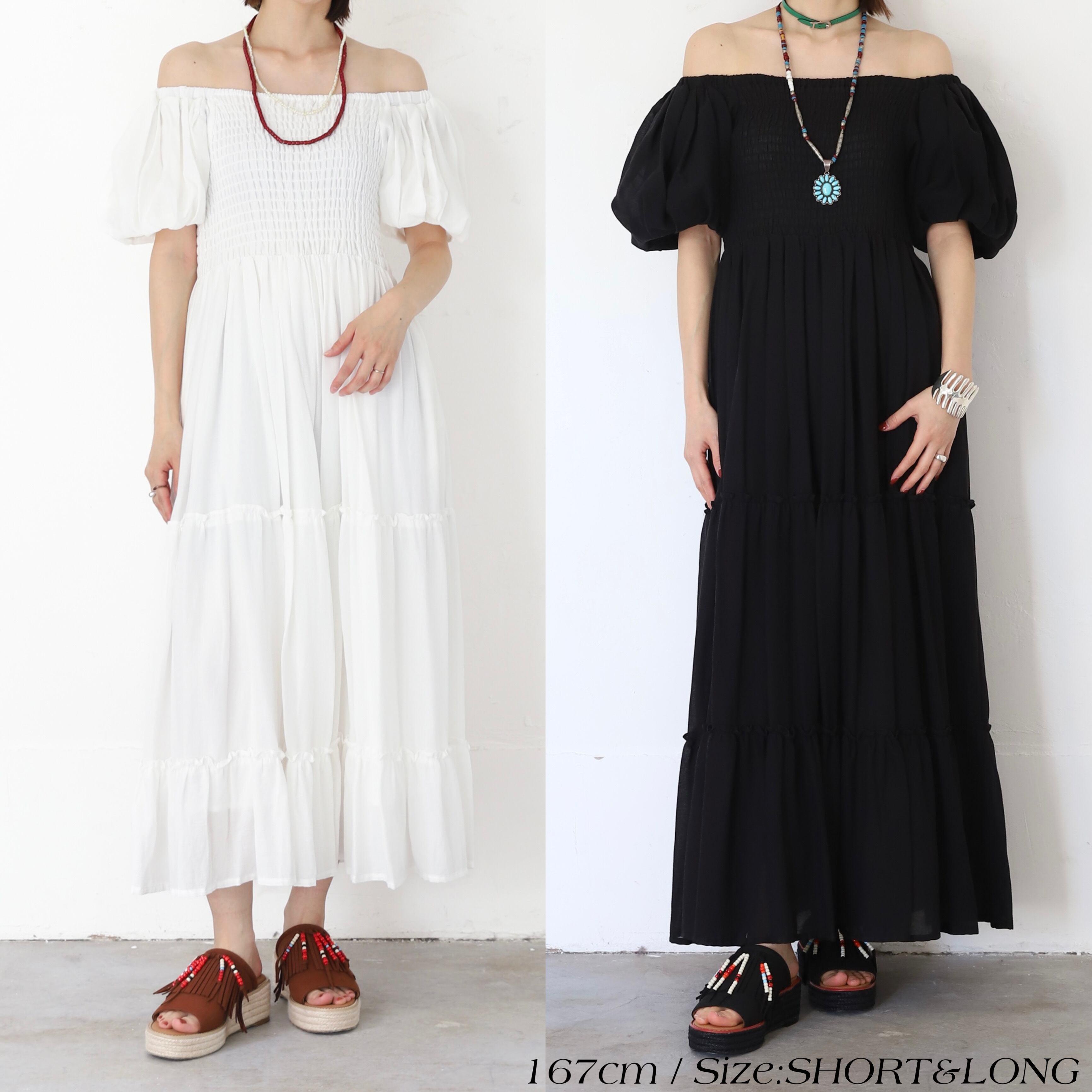 -ふんわり膨らむパフスリーブや、たっぷりと生地を使ったティアードスカートがドラマティックなシルエットを演出