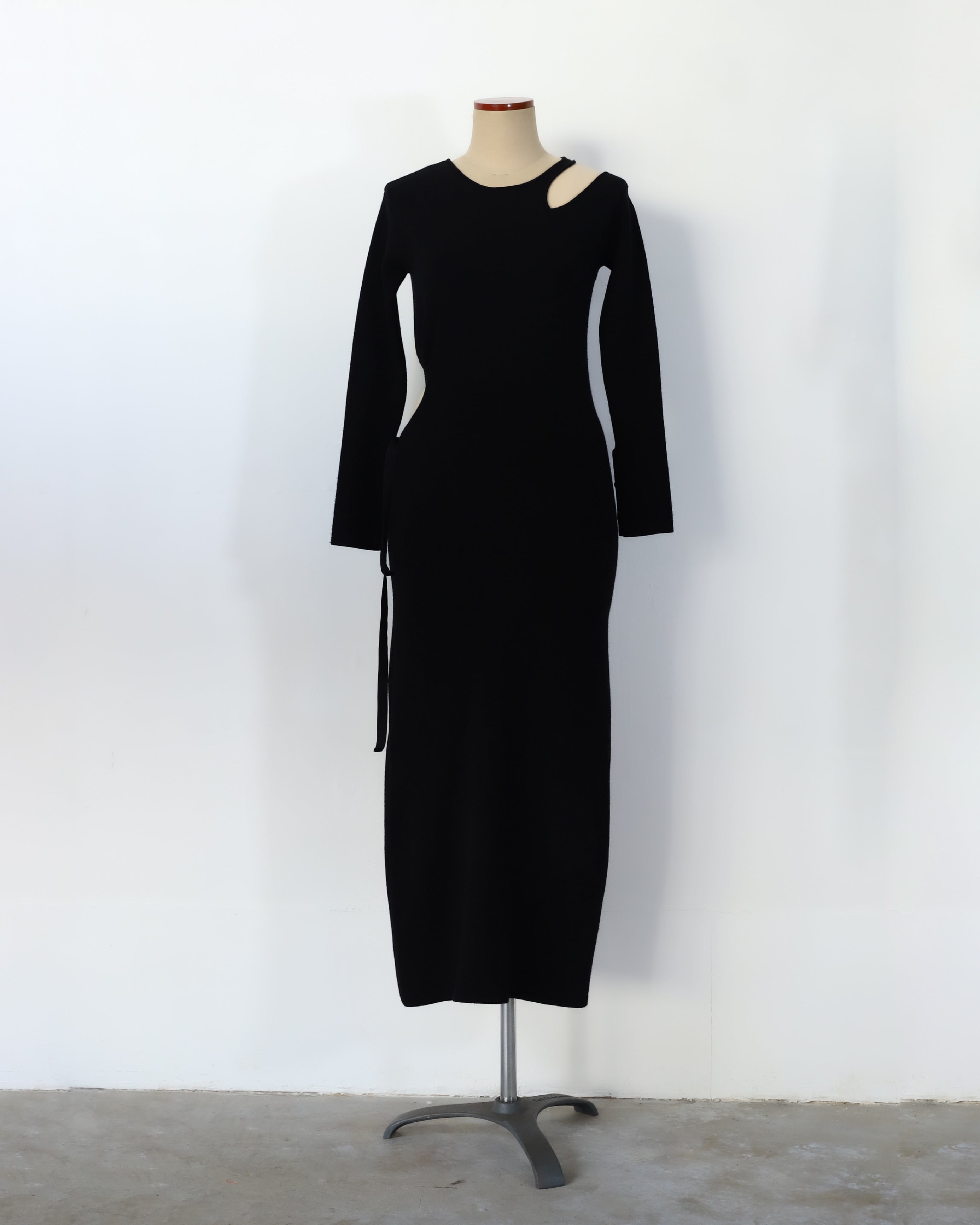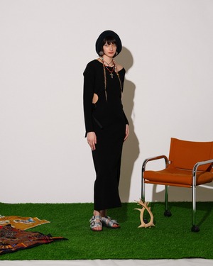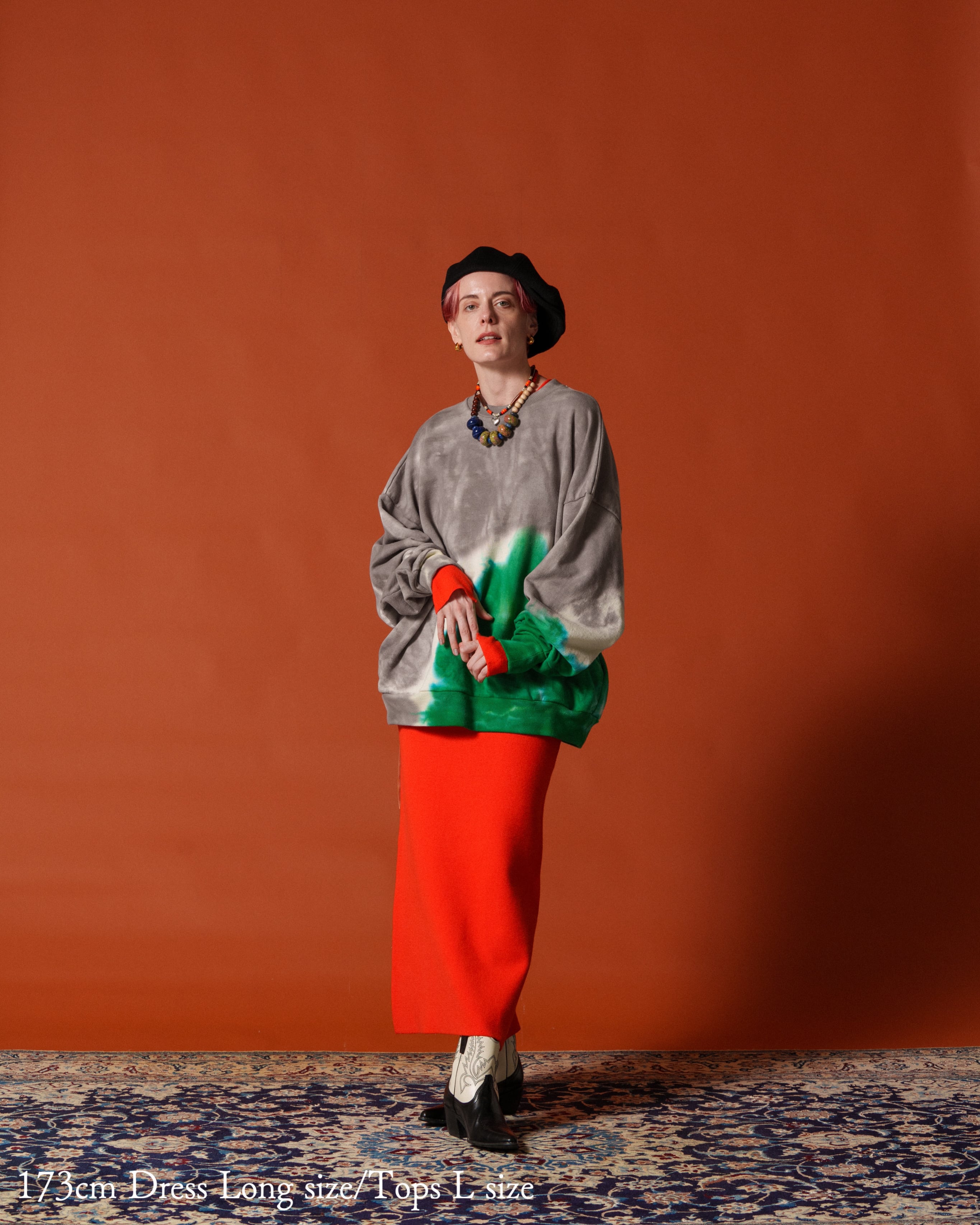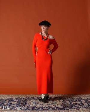 残り僅か | Art Knit Dress / Black&Valencia Orange